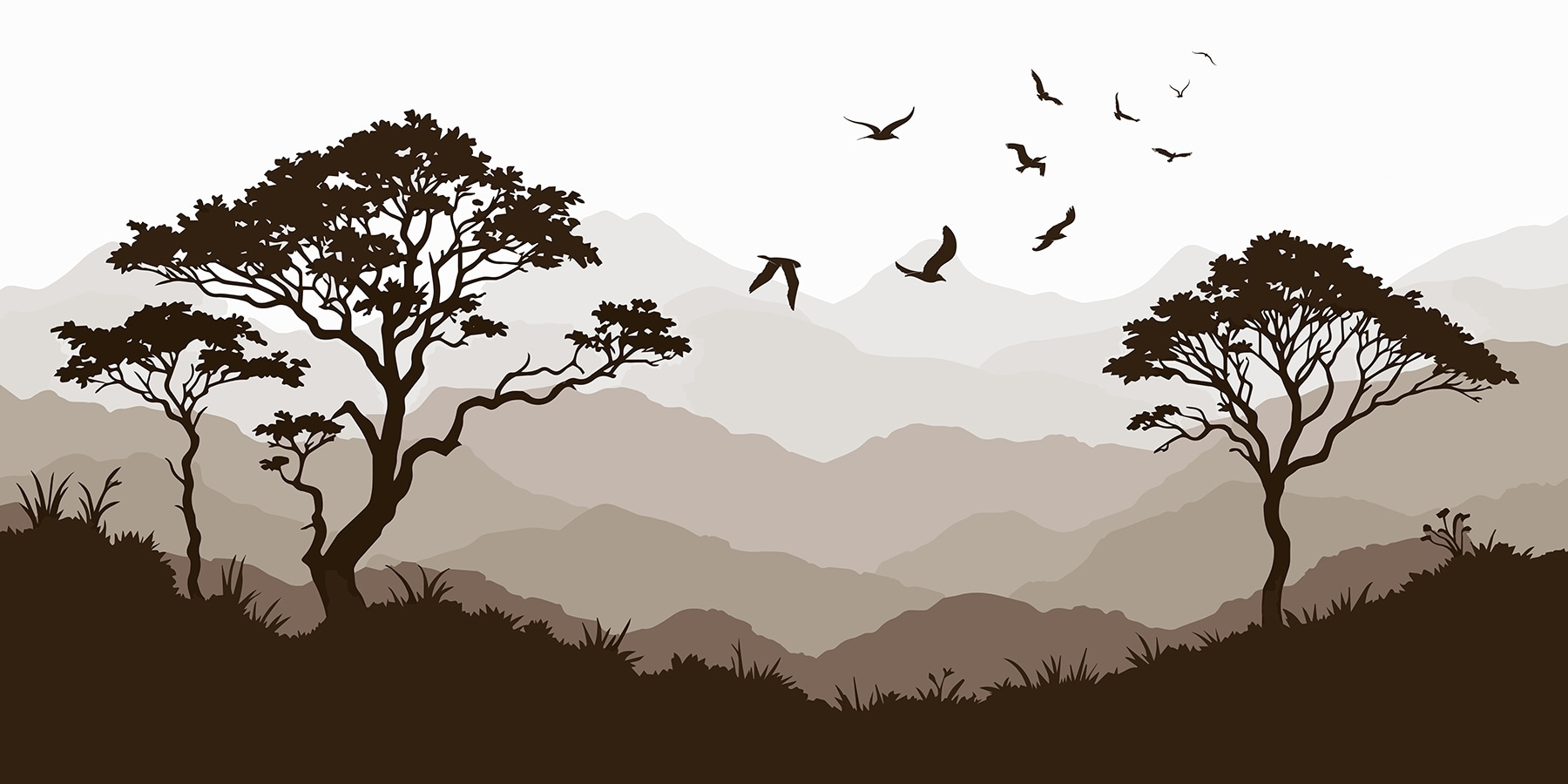 Transforma cualquier espacio con este impresionante mural de pájaros volando sobre una serena cordillera. Es como llevar un pedazo de naturaleza directamente a tu habitación: imagina despertarte cada mañana con esa atmósfera tranquila. Los suaves tonos marrones y terrosos crean un ambiente acogedor, perfecto para días relajantes o reuniones animadas. Imagínatelo: amigos admirando el arte, historias fluyendo, mientras el mural añade silenciosamente su encanto. Además, ¡esas aves! Aportan un toque de fantasía, recordándote que la aventura siempre está ahí arriba. Es más que decoración, ¡es un suave escape!