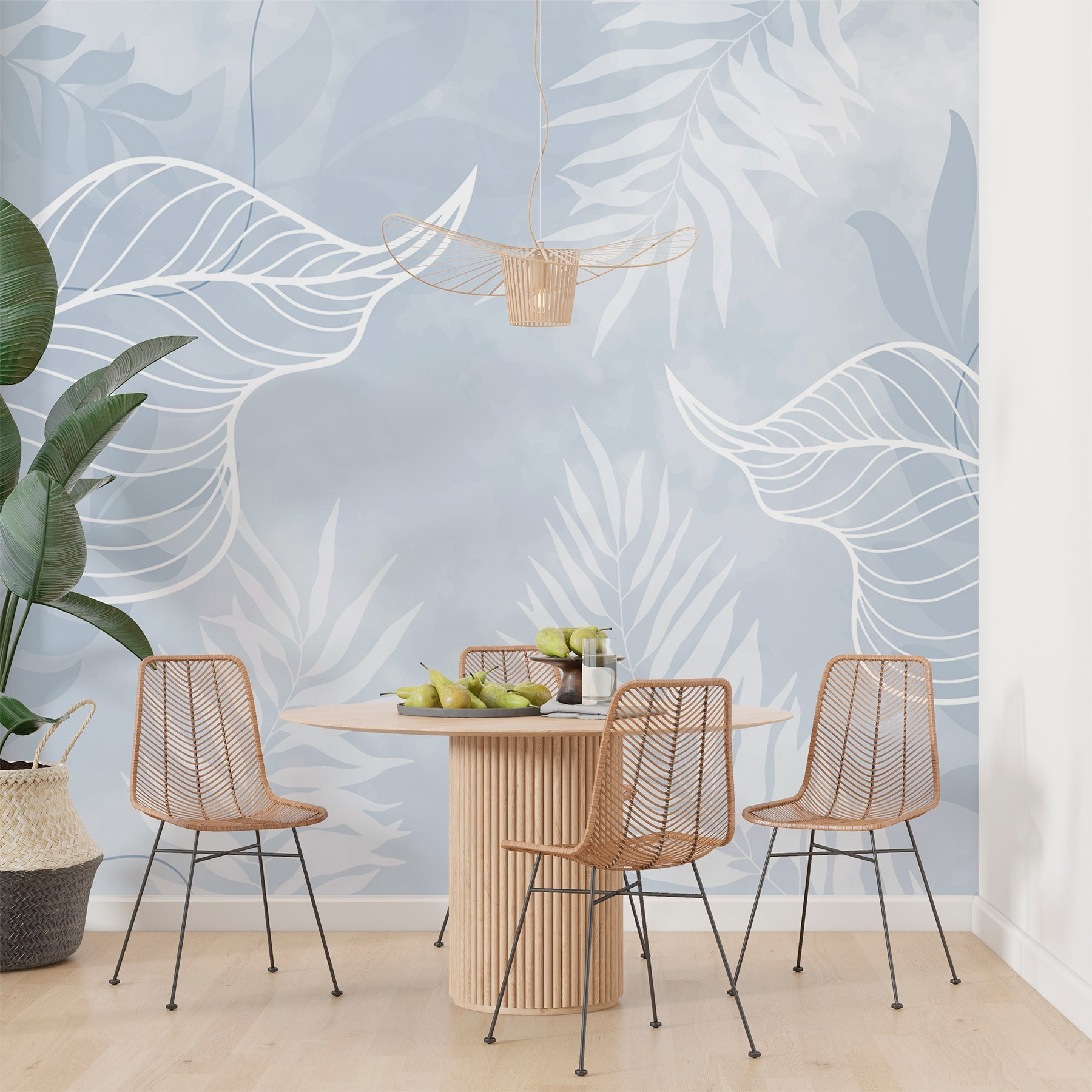 Transforma tu espacio en un refugio tranquilo con el mural Hojas blancas sobre fondo azul. Imagina entrar en un oasis de serenidad cada vez que entras en la habitación: esas delicadas hojas blancas bailan sobre un fondo azul suave, creando un ambiente relajante que se siente como una suave brisa en un día cálido. Es como el susurro de la naturaleza salpicado en sus paredes. Perfecto para cualquier zona, este mural invita a la calma, ya sea en un acogedor rincón de lectura o en un tranquilo dormitorio. ¿Quién no querría acurrucarse con un buen libro rodeado de tanto encanto? No es sólo decoración; es un pequeño trozo de alegría que ilumina incluso los días más nublados.