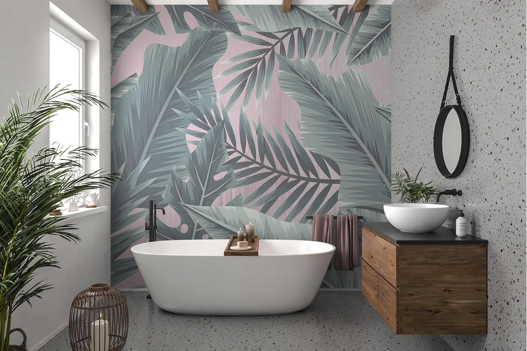 Transform your space into a serene oasis with “Nature’s Tapestry in Soft Hues.” This enchanting wall mural invites the lush tropical feel right into your living room, bedroom, or that cozy nook you love. Picture it—relaxing with a book, surrounded by dreamy palm leaves, soft greens mingling with gentle blush tones. It’s like being on a perpetual vacation, minus the sunburn.