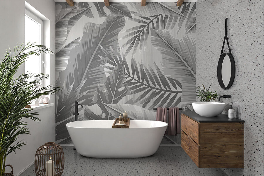 Transforma cualquier espacio con este impresionante mural gris y blanco, que representa un paraíso frondoso que transmite calma y vitalidad a la vez. Imagina entrar en una habitación donde las hojas parecen susurrar historias de aventuras tropicales, no demasiado alto, pero lo suficiente como para despertar tus sueños. Los sutiles tonos se mezclan a la perfección, añadiendo profundidad sin abrumar los sentidos. Perfecto para esos acogedores rincones de lectura o animados lugares de reunión, aporta un toque de naturaleza al interior. Además, ¿quién necesita unas vacaciones tropicales cuando puedes tener tu propio refugio de serenidad en casa? Es como un soplo de aire fresco, directamente en tus paredes.