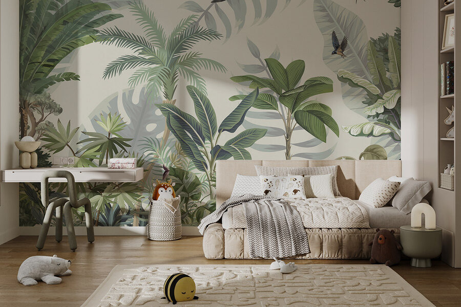 ¡Transforma una pared lisa en un paraíso exuberante con este mural tropical! Imagina una vegetación vibrante y alegres pájaros revoloteando: es como traer una mini selva tropical directamente a tu salón. Imagina tomarte tu café matutino mientras este mural te transporta a selvas bañadas por el sol. Los colores relajantes y los ricos detalles rezuman calidez y relajación. Además, ¡es un excelente tema de conversación! Tanto si eres un amante de la naturaleza como si solo necesitas un toque de vida en tu hogar, este mural hará que todos se sientan un poco más aventureros. ¿Quién diría que las paredes podían ser tan emocionantes?