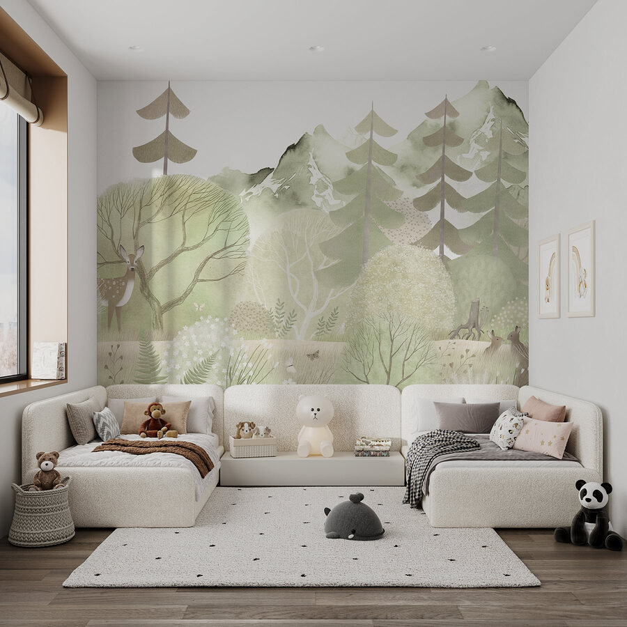 Perfecto para rincones acogedores o para esa pared en blanco que necesita un poco de amor, aporta un toque de paz y tranquilidad. Además, cada vez que alguien te pregunte por él, podrás deleitarles con historias de aventuras en el bosque, o tal vez simplemente contarles cómo te gustaría ser tan tranquilo como ese ciervo. Los amantes de la naturaleza soñarán con pasear entre la suave maleza y los árboles, mientras que el resto simplemente verá cómo sus preocupaciones se desvanecen. ¿Quién diría que un mural podría convertirse en un escape diario?
