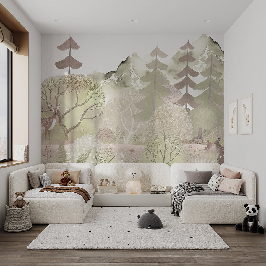 Transforma cualquier estancia en un tranquilo refugio forestal con este encantador mural «Ciervos en el bosque». Imagínate entrando en un bosque tranquilo, donde la suave presencia de los ciervos y los colores suaves y apagados crean un cálido abrazo. Cada mirada a este mural invita a un suspiro de relajación, lo que lo hace perfecto para una acogedora sala de estar o un dormitorio de ensueño. Ya sea mientras tomas un café, sueñas despierto o incluso lees, este mural te susurra tranquilidad. Es la naturaleza, capturada con arte, que lleva el aire libre directamente a tu hogar. ¡Anímate, deja que tus paredes cuenten una historia!