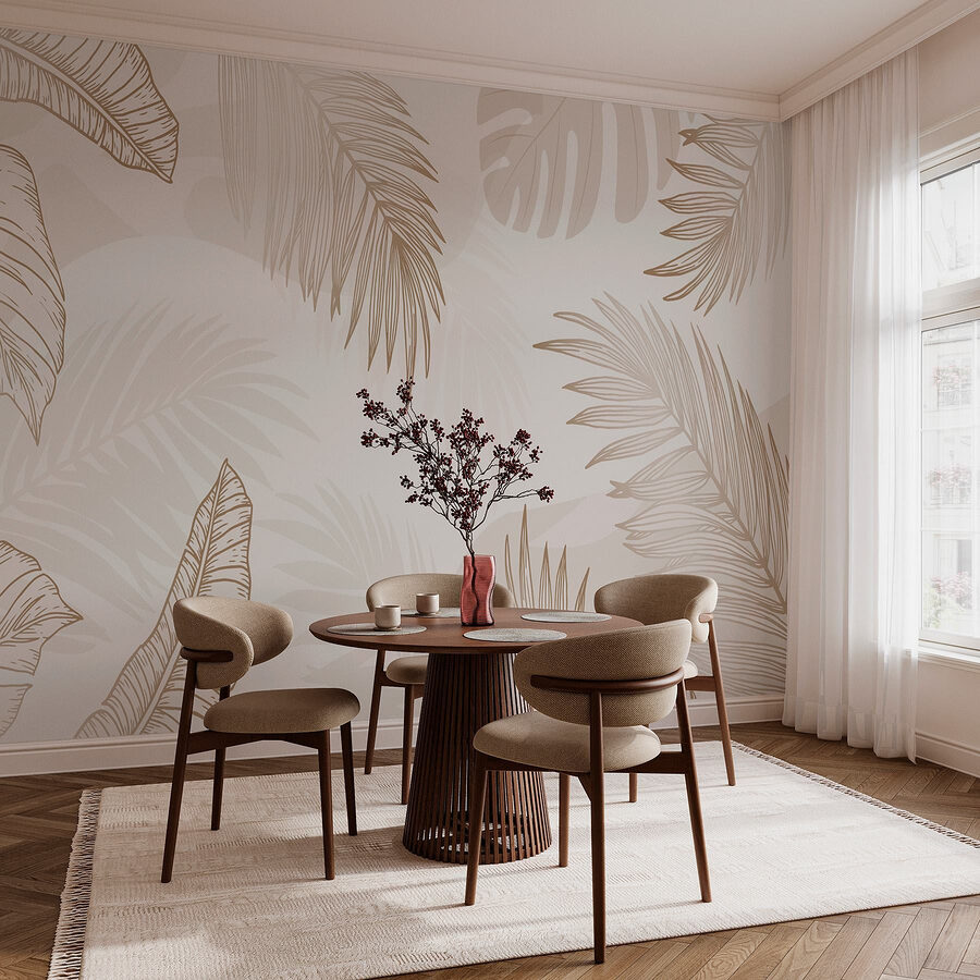 Alegre cualquier pared con este encantador mural de fondo blanco adornado con suaves hojas marrones. Es como llevar un poco de naturaleza al interior sin preocuparse de regarla. Imagínese sentado en un rincón acogedor, tomando el té, mientras estas elegantes hojas crean un ambiente sereno. La sencilla elegancia de este mural tiene el encanto de hacer que un espacio resulte cálido y acogedor al instante. Perfecto para una sala de estar, un dormitorio o incluso esa habitación libre que necesita un poco de amor, este diseño añade un toque de fantasía sin abrumar los sentidos. Además, es un elegante tema de conversación, ¡así que los invitados lo tendrán en cuenta!