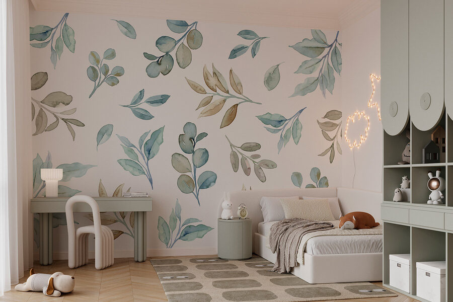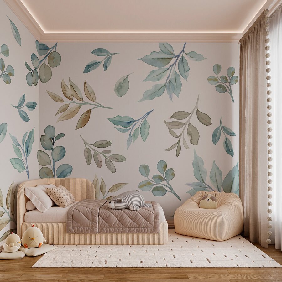 Transforme cualquier habitación en un refugio de serenidad con este impresionante mural de pared con un animado estampado de hojas y ramas. Imagina entrar en un bosque soleado cada vez que entras en la habitación, ¿no sería refrescante? El diseño de acuarela, con sus suaves tonos verdes y tierra, aporta un toque de naturaleza al interior, perfecto para aquellos que buscan un poco de calma en sus ajetreadas vidas.