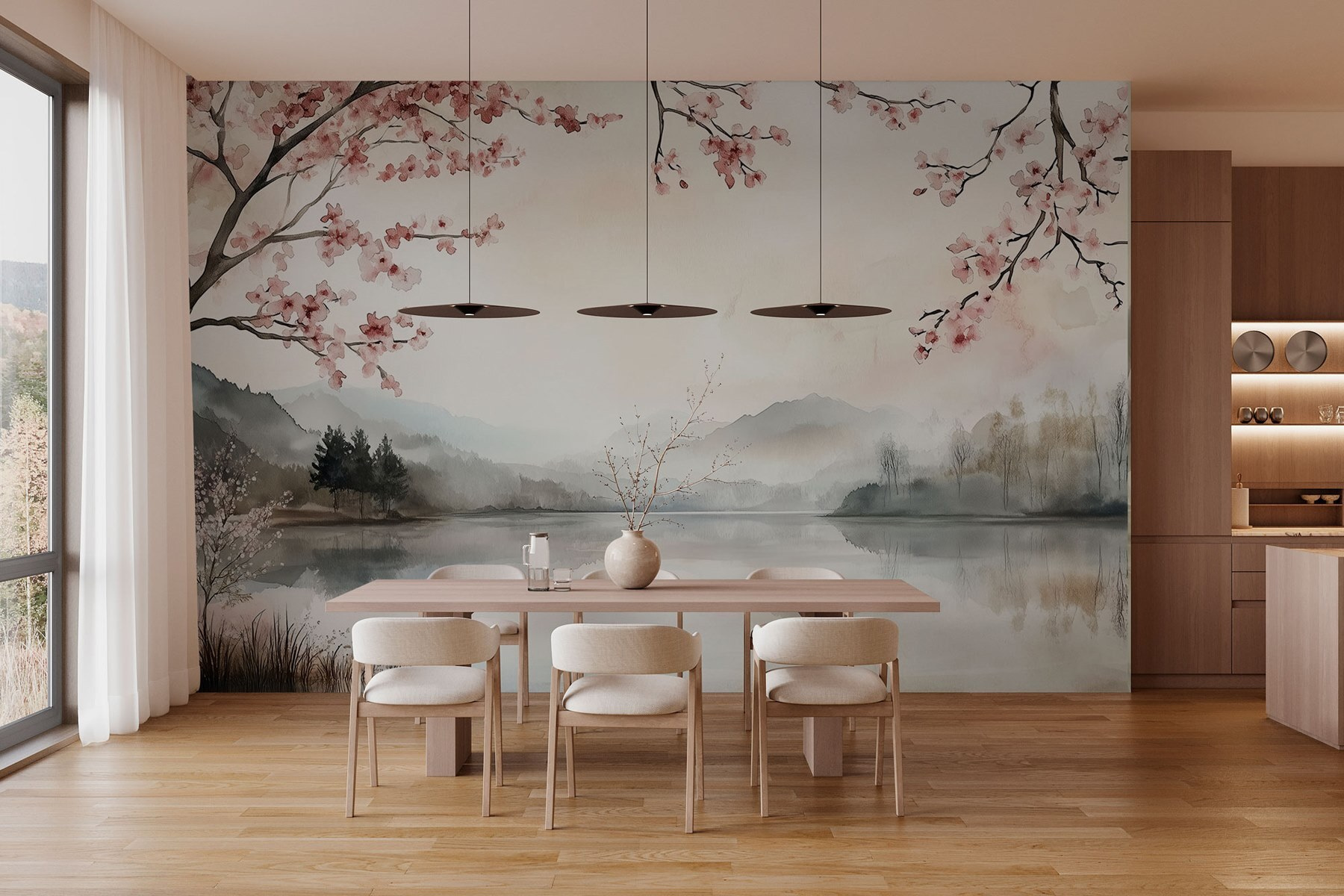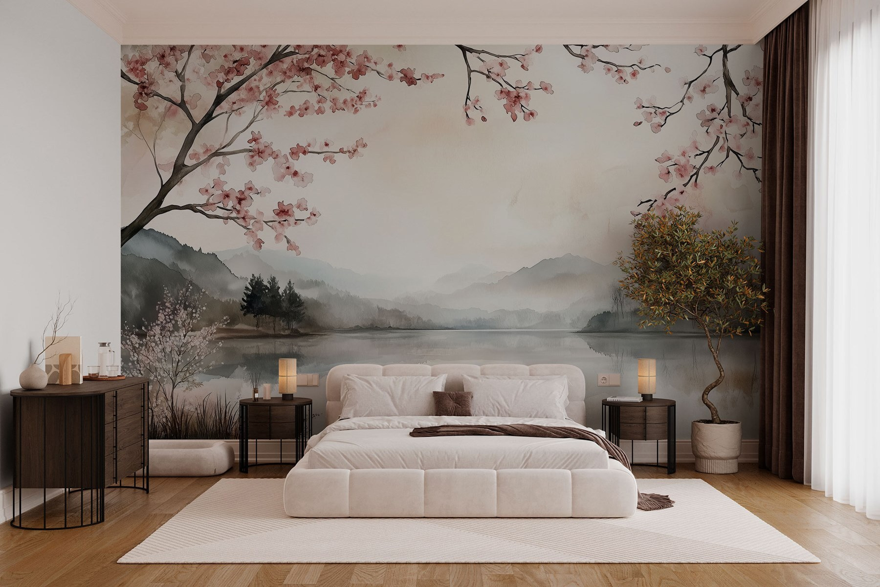 Transforme su espacio en una escapada serena con este impresionante mural de acuarela de un lago rodeado de suaves montañas brumosas y delicados árboles. Imagina que entras en tu habitación y sientes como si pudieras pasear a lo largo de esa tranquila agua, tal vez incluso tirar una piedra y ver bailar las ondas. Los tonos suaves aportan calma y un equilibrio perfecto, convirtiéndolo en un refugio acogedor para relajarse o reunirse con amigos. Es como un abrazo de la naturaleza, justo en la pared, que invita a soñar despierto y a respirar hondo. ¿Quién no querría eso?✨ Tanto si buscas un refugio rústico como un toque moderno, este mural lo combina todo sin esfuerzo.