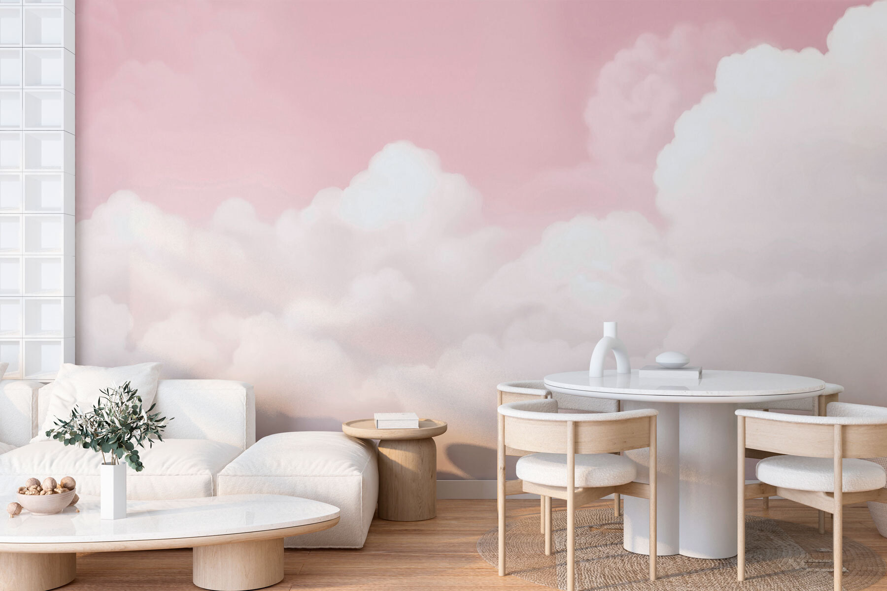 Transforme cualquier habitación con este mural de ensueño de un cielo rosa salpicado de esponjosas nubes. Imagina que te despiertas cada día bajo un cielo sereno y pastel, donde las preocupaciones se alejan flotando como esas suaves nubes. Es perfecto para un dormitorio tranquilo o un cuarto de juegos caprichoso. Cada mirada es como un suave recordatorio de días soleados y tardes perezosas. Incluso puede que tus amigos te pregunten si tienes las mejores vistas de la ciudad. Se trata de llevar un toque de naturaleza al interior, ¡sin retrasos meteorológicos ni charcos! Un pequeño toque de magia para la vida cotidiana.