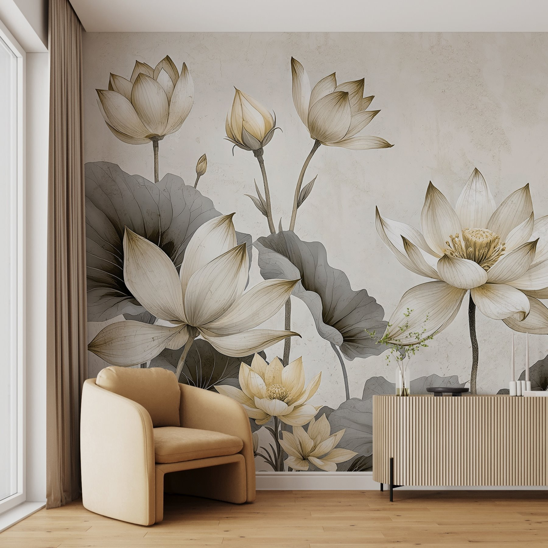 Transforme cualquier espacio con el mural “Elegantes flores en tonos serenos”, donde la belleza floral se combina con una paleta tranquila. Imagínese que entra en una habitación que parece un jardín sereno, donde las suaves flores marcan la diferencia. Los colores suaves crean un ambiente acogedor, perfecto para relajarse después de un largo día. Imagínese una tarde soleada, tomando el té, con estas impresionantes flores como telón de fondo, susurrando paz. Es como tener un soplo de aire fresco en la pared. Este mural no es sólo decoración; es un trocito de tranquilidad que añade carácter a cualquier habitación. No se sorprenda si sus amigos se paran a admirarlo: ¡es ese tipo de pieza!