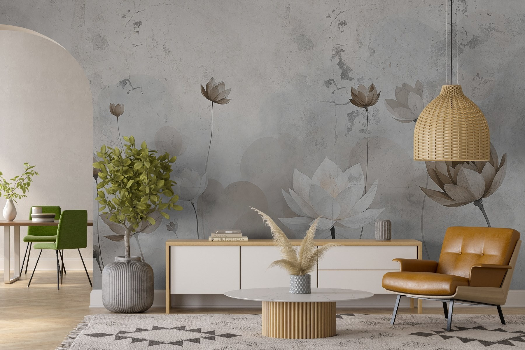 Imagínese que entra en una habitación que al instante parece un sereno refugio en el jardín. Este mural de pared, con sus delicadas flores meciéndose suavemente sobre tallos altos, lleva ese ambiente tranquilo directamente a su hogar. Los colores suaves se mezclan a la perfección, creando una sensación de calma que susurra: “Respira hondo, has llegado”. Perfecto para un rincón de lectura acogedor o para esa pared que necesita un poco de cariño, captura la belleza de la naturaleza sin necesidad de mantenimiento. Imagínate tomando el té, disfrutando de esta maravilla floral. Es como tener un jardín secreto, sin barro. Así que deja que esas paredes florezcan e insuflen nueva vida a tu espacio.