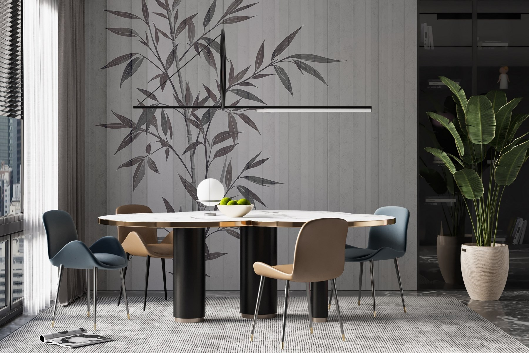 Transforma tu espacio con este encantador mural de pared con un delicado diseño de plantas sobre un fondo suave a rayas. Es como traer un trozo de naturaleza al interior, sin los molestos insectos. Imagínese tomando un café por la mañana o acurrucándose con un buen libro, rodeado de este ambiente relajante. Los tonos suaves y las elegantes hojas crean un ambiente cálido y acogedor, perfecto para cualquier habitación. Es casi como tener una tranquila pared de jardín, sin necesidad de tener un pulgar verde. Perfecto para los que quieren un toque de naturaleza sin compromiso.