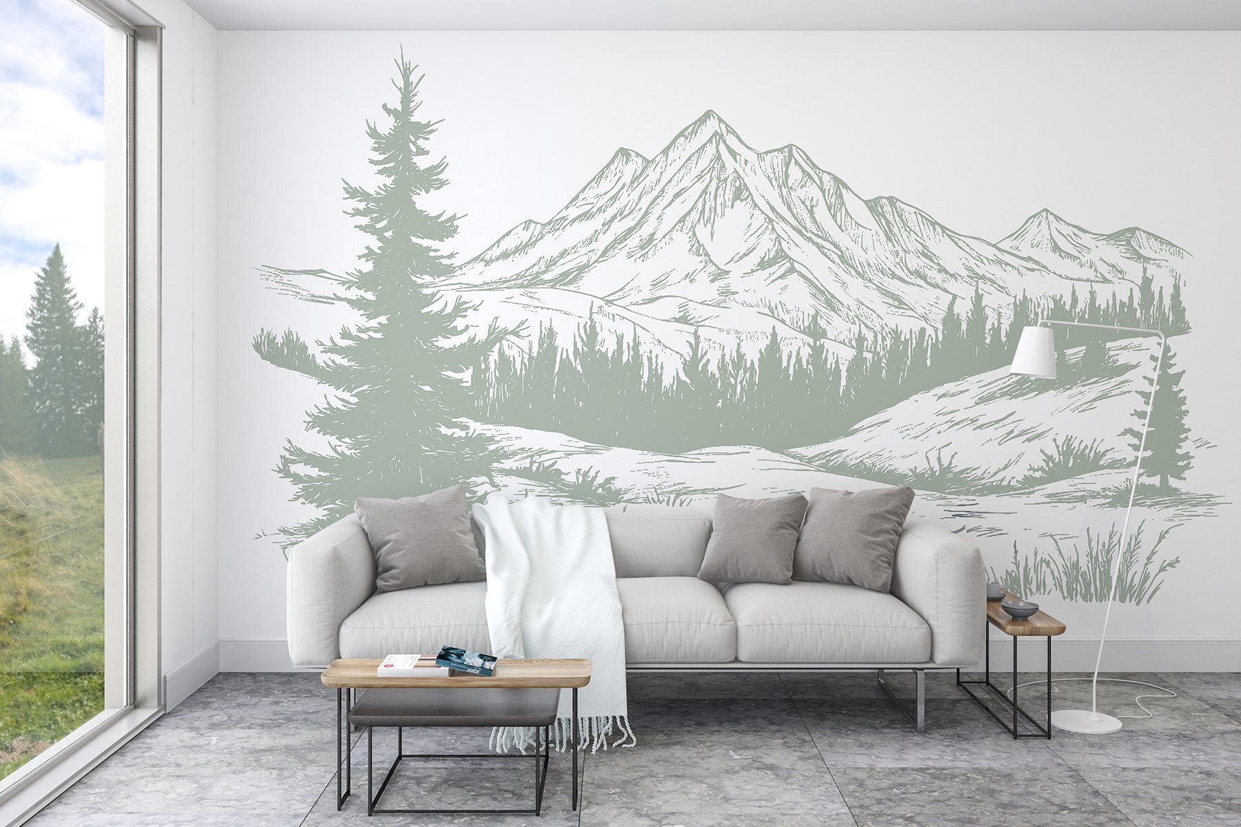 Transforme cualquier habitación en un refugio sereno con este impresionante mural de montañas. Imagínese esto: una mañana acogedora con una taza de café humeante y esta obra de arte que le atrae hacia el abrazo tranquilo de la naturaleza. Los suaves tonos verdes son como el abrazo de la naturaleza, aportando un aire fresco a esas cuatro paredes. Es perfecta para un salón, un despacho o incluso para ese rincón donde se hacen realidad los sueños. Imagina las conversaciones que suscitará o cómo te hará sentir un martes en el que el café no sea suficiente. ¿Este mural? Es algo más que decoración: es todo un estado de ánimo.