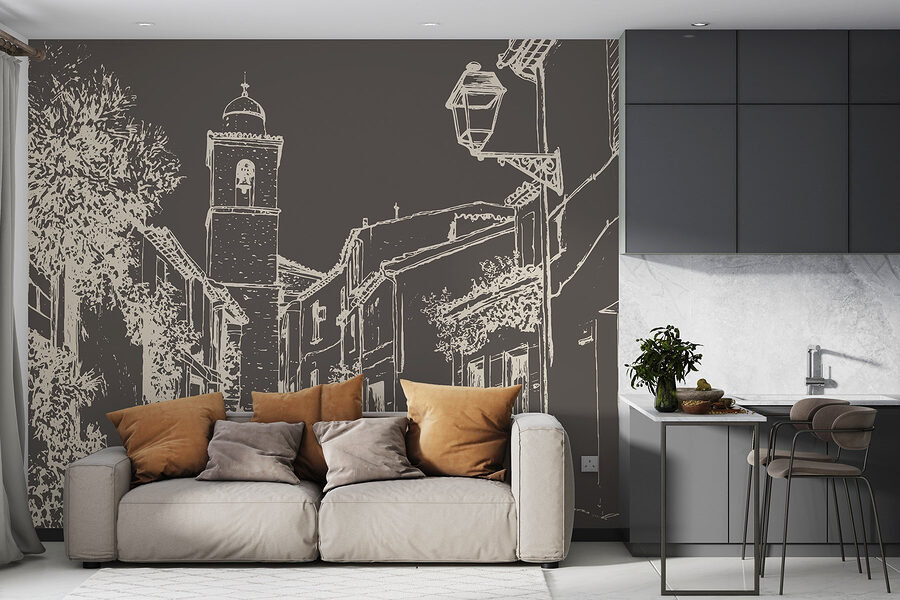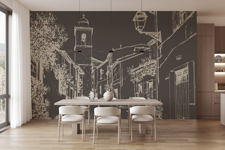 Adéntrese en una encantadora escena callejera con este mural de pared que captura la calidez de la vida acogedora de un pueblo. Con sus pintorescos edificios y un campanario que parece sacado de un libro de cuentos, es perfecto para suscitar ensoñaciones y ansias de viajar. Imagínate tomando un café mientras contemplas esta encantadora vista, como si el aroma del pan recién horneado llegara desde el otro lado del mural. Las suaves líneas aportan un toque juguetón que invita a la calma. Perfecto para cualquier habitación, este mural añade carácter y esos pequeños y encantadores momentos que hacen que un hogar sea, bueno, un hogar. Además, es un verdadero tema de conversación: ¿a quién no le gustaría charlar sobre sus viajes imaginarios?