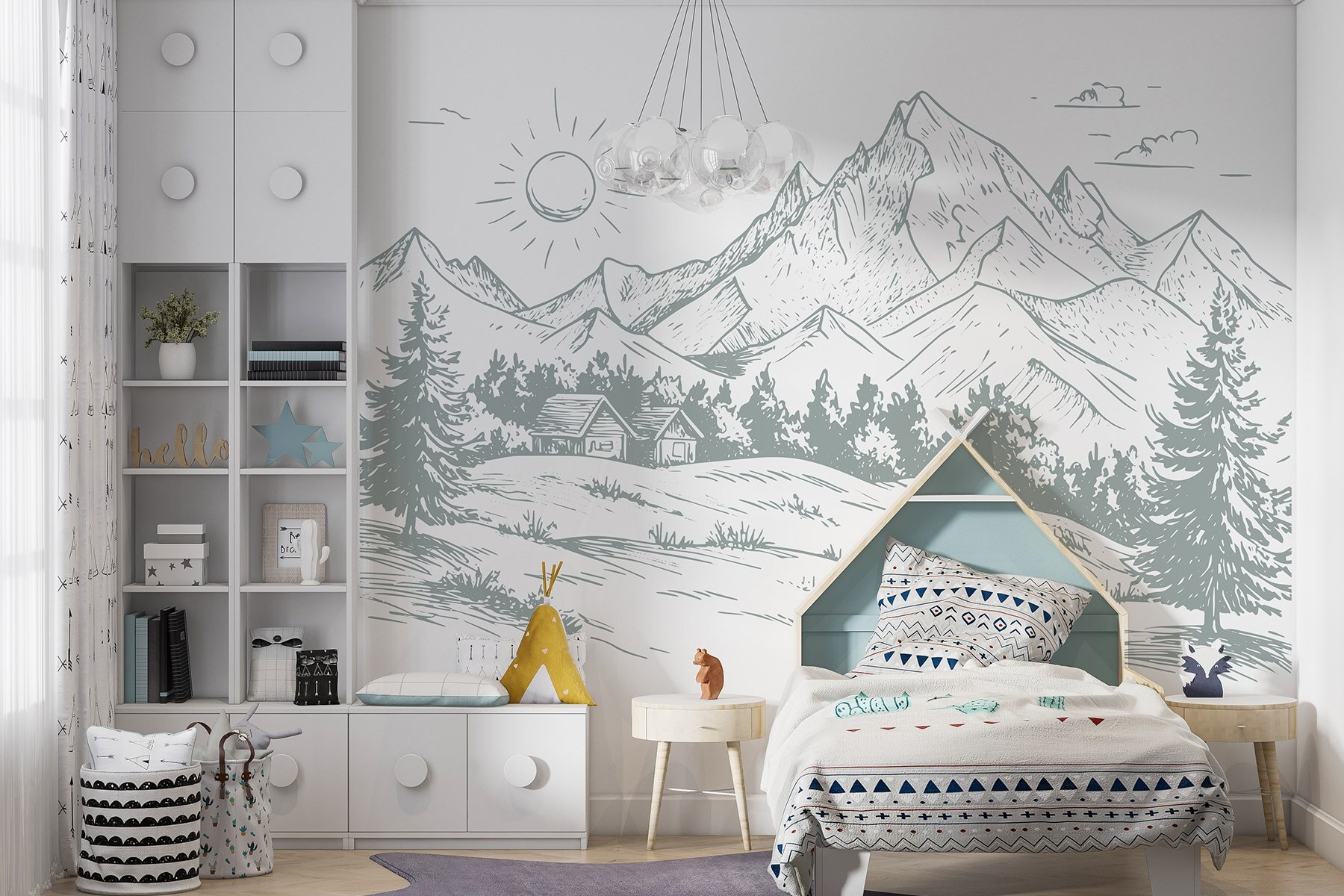 Transforme cualquier espacio en una escapada serena con este mural de pared que presenta un hermoso paisaje de árboles y majestuosas montañas. Imagínese despertarse con los suaves contornos de la naturaleza justo en su salón o dormitorio – es como unas mini vacaciones cada día. Los sutiles detalles y las suaves líneas crean un ambiente tranquilizador, perfecto para relajarse después de un largo día o para inspirar la creatividad. Imagínate a tus amigos entrando, con los ojos iluminados al percibir la sensación de frescor y aire libre. No es sólo decoración; ¡es un soplo de aire fresco para tus paredes!