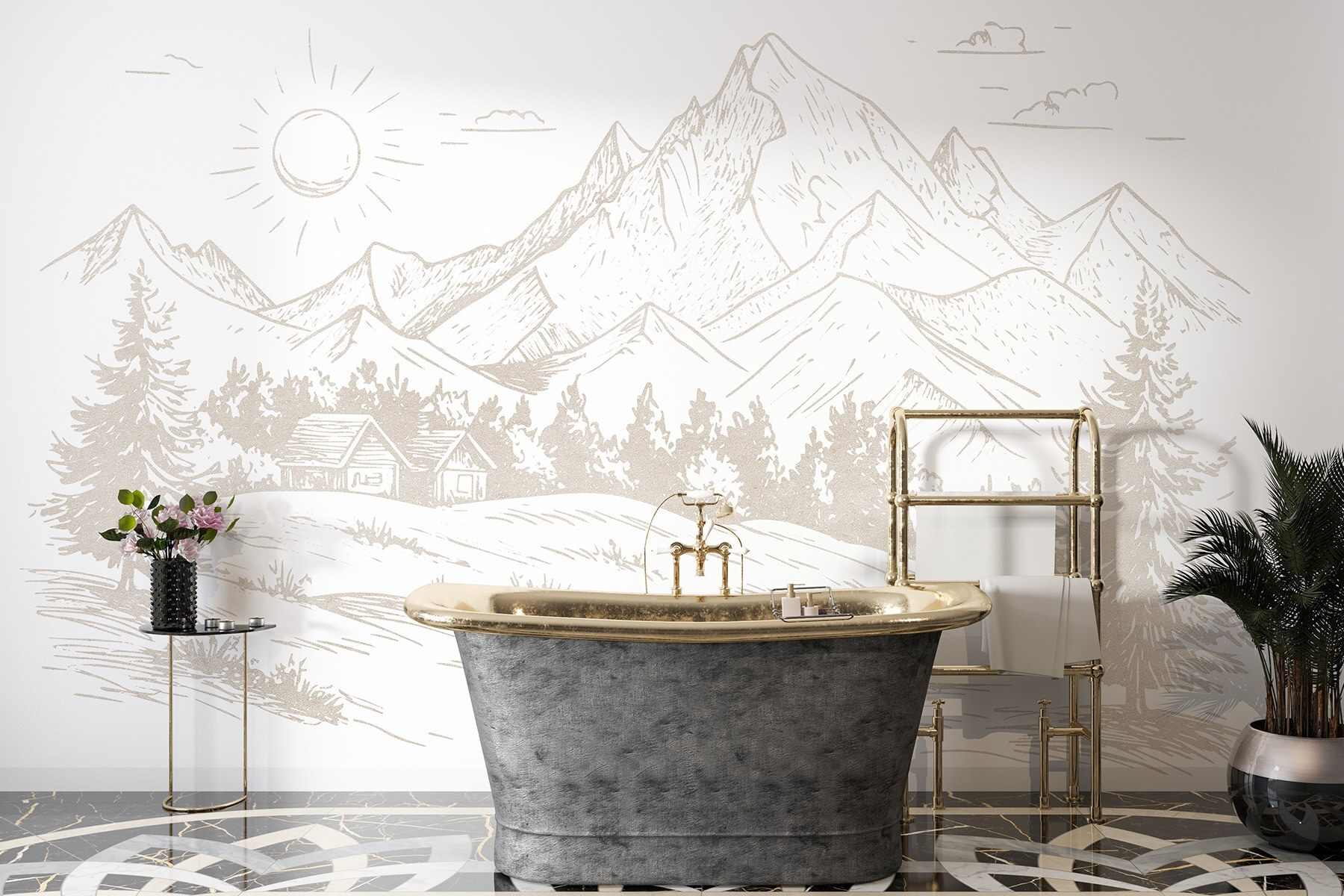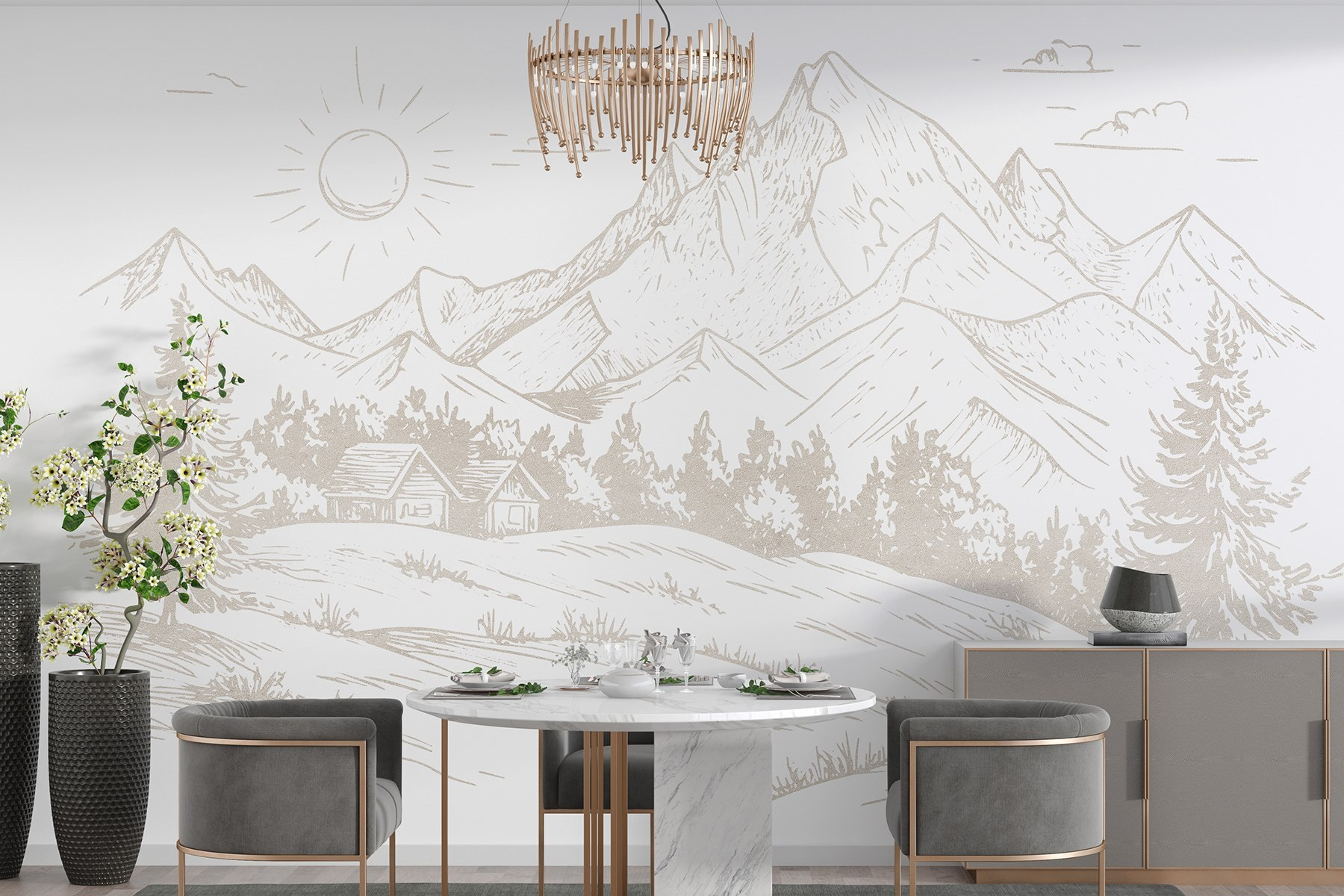 Transforme cualquier espacio con este encantador mural de pared que trae un paisaje sereno directamente a su hogar. Imagínese majestuosas montañas erguidas, flanqueadas por frondosos árboles y suaves colinas onduladas. Es como hacer una pequeña escapada sin moverse del sofá. Imagínese tomando el café de la mañana mientras contempla esta serena vista; hasta los pájaros se pondrían un poco celosos. Además, las líneas suaves y los tonos tierra invitan a un ambiente acogedor. Perfecto para una cabaña rústica o un espacio moderno y elegante, este mural susurra calma y añade un toque de belleza natural dondequiera que vaya.