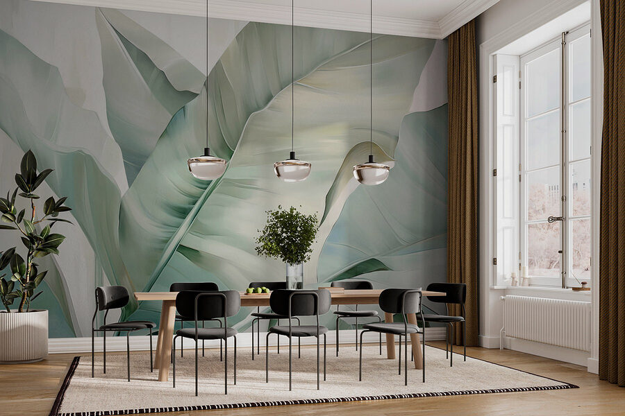 Transformar un espacio puede ser tan fácil como desplegar unas exuberantes hojas en tonos suaves. Este mural no es sólo para las paredes; es como invitar a una escapada tropical directamente al salón. Imagínese tomando una copa, con los verdes vibrantes revoloteando a su alrededor, y soñando despierto con playas soleadas, sin la arena en los zapatos. Los colores suaves crean un ambiente tranquilo, por lo que es perfecto para un rincón de lectura acogedor o una zona de relax. Además, ¡es como si tu pared acabara de recibir un filtro digno de Instagram! ¿A quién no le gustaría tener un telón de fondo en el que sentirse como en unas minivacaciones?