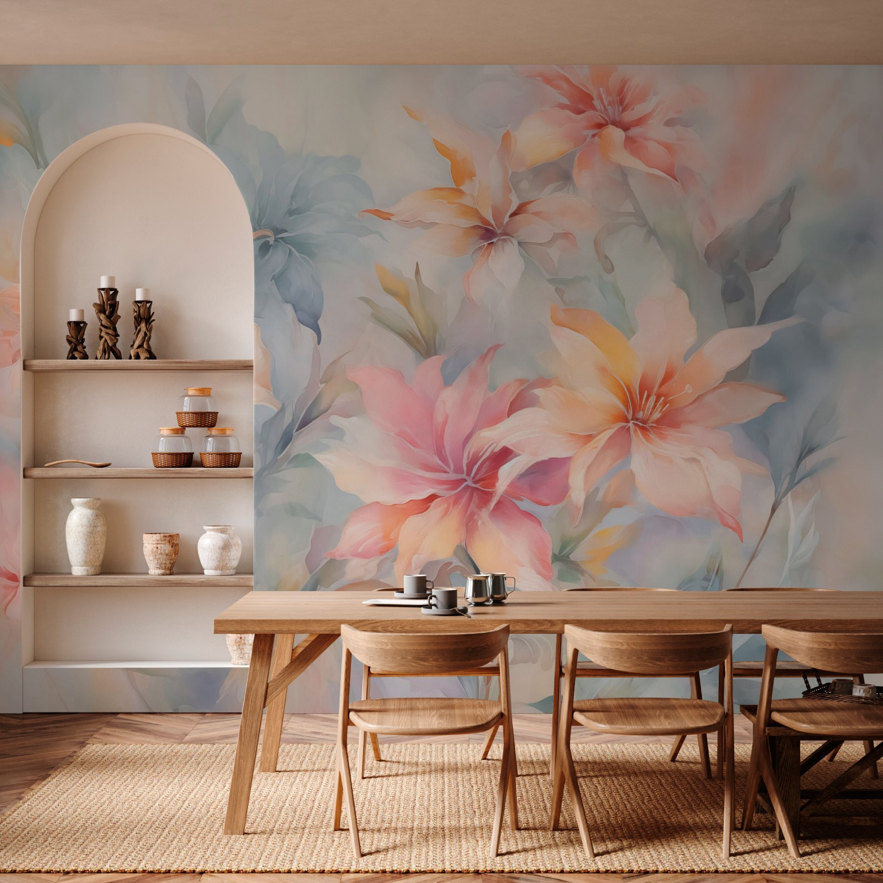 Transforme cualquier espacio con este impresionante mural de pared con un encantador ramo de flores. Es como tener un jardín en casa sin preocuparse de regarlo. El estilo de acuarela suave se arremolina en tonos suaves, creando un ambiente tranquilo y acogedor, perfecto para un rincón acogedor o una sala de estar animada. Imagínate tomando el té mientras disfrutas de su belleza: ¿quién no se sentiría inspirado? Además, es un gran tema de conversación. Tus amigos no sólo verán flores, sino que se sentirán como si estuvieran soñando despiertos. La naturaleza está a tu alcance.