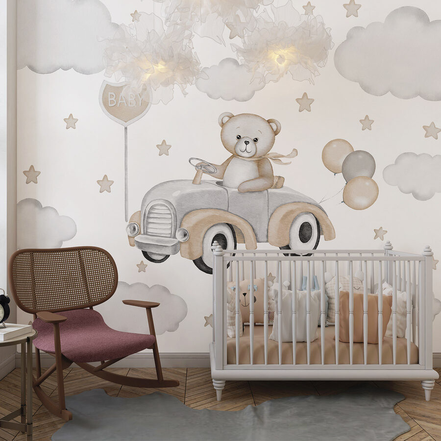 Dale un toque de alegría a la habitación de cualquier pequeño con este encantador mural de pared que muestra a un osito de peluche en una encantadora aventura. Imagínate al peluche al volante, globo en mano, navegando entre nubes suaves y estrellas centelleantes. Es el tipo de escena que hace que la hora de dormir sea un poco más mágica y soñadora. Perfecto para despertar la imaginación, este mural transforma cualquier espacio en una escapada caprichosa. Es como tener un simpático copiloto que vigila alegremente a tu hijo, creando un acogedor refugio lleno de maravillas y risas. Es el toque perfecto para la habitación de una niña o un cuarto infantil: divertido y relajante, ¡tal y como debería ser la infancia!