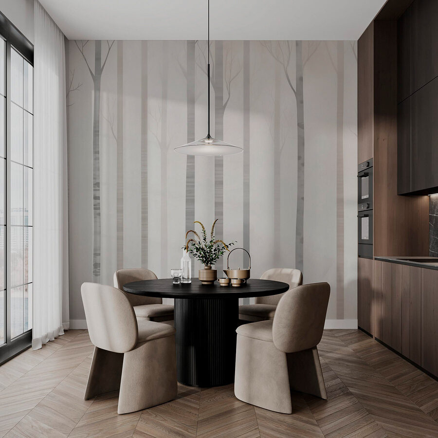 Adéntrese en un mundo de ensueño con este mural de pared que muestra un sereno grupo de árboles envueltos en una suave niebla. Es como tener un trozo de naturaleza en tu salón, sin el riesgo de pisar barro. Imagínatelo: acurrucado con un buen libro mientras los suaves y fantasmales troncos crean un tranquilo telón de fondo. Añade un toque aireado, haciendo que las habitaciones parezcan espaciosas y luminosas. Perfecto para los que anhelan una conexión con el aire libre pero también disfrutan de las comodidades del hogar. Este mural susurra tranquilidad e invita a la creatividad, ¡y no es para menos! ¿Quién no querría contemplar un bosque sereno mientras sueña despierto?
