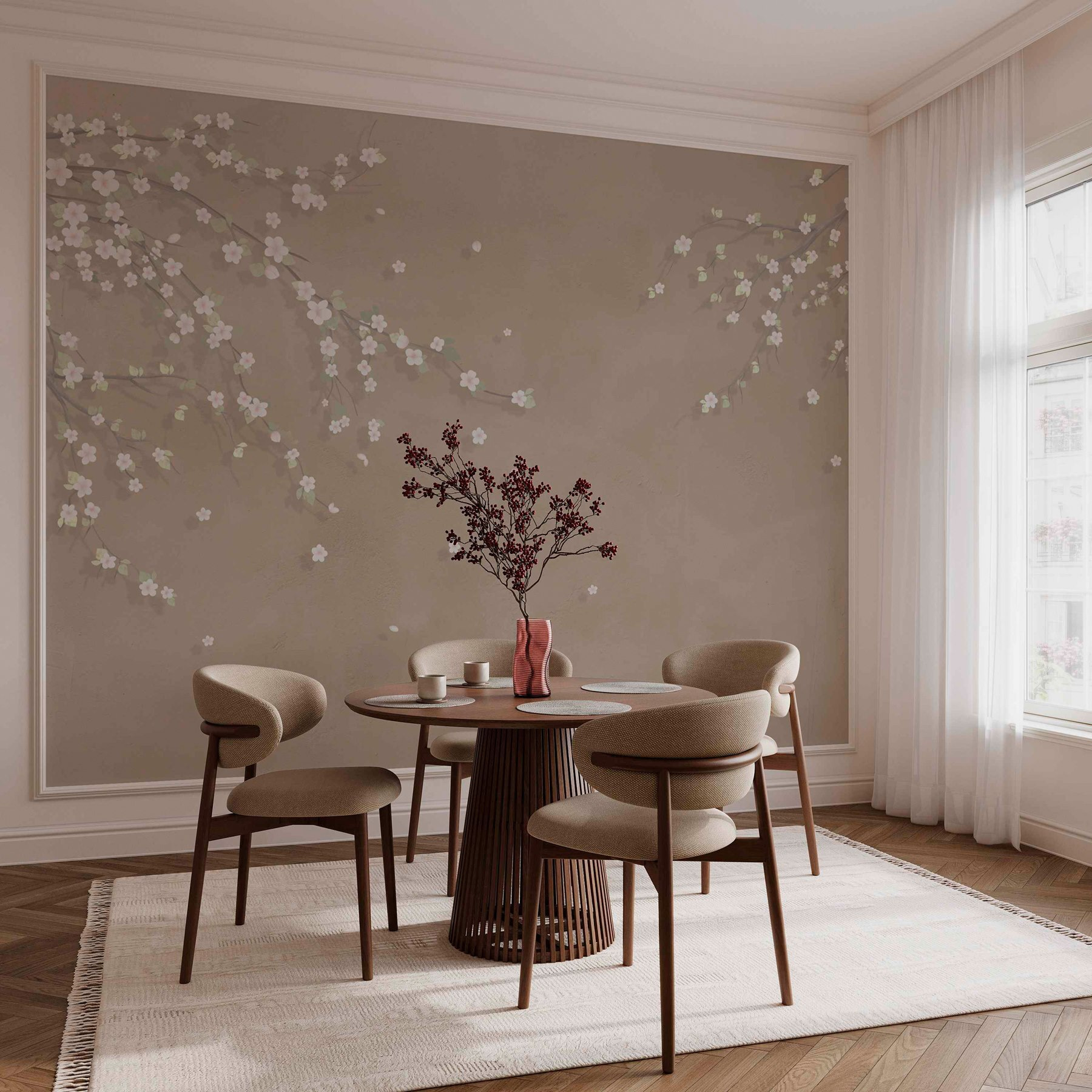 Transforme cualquier espacio con este encantador mural de flores blancas sobre ramas. Es como una suave brisa primaveral que trae la naturaleza a su hogar. Imagínese despertarse con suaves flores bailando en la pared, iluminando incluso los días más nublados. Esos delicados pétalos casi hacen que parezca que todavía estás fuera, tomando café en un patio soleado. Perfecto para un acogedor salón o un sereno dormitorio, este mural susurra tranquilidad. Es como tener un trocito de naturaleza en casa: hermoso, relajante e increíblemente acogedor. ¡Sus paredes están a punto de florecer!
