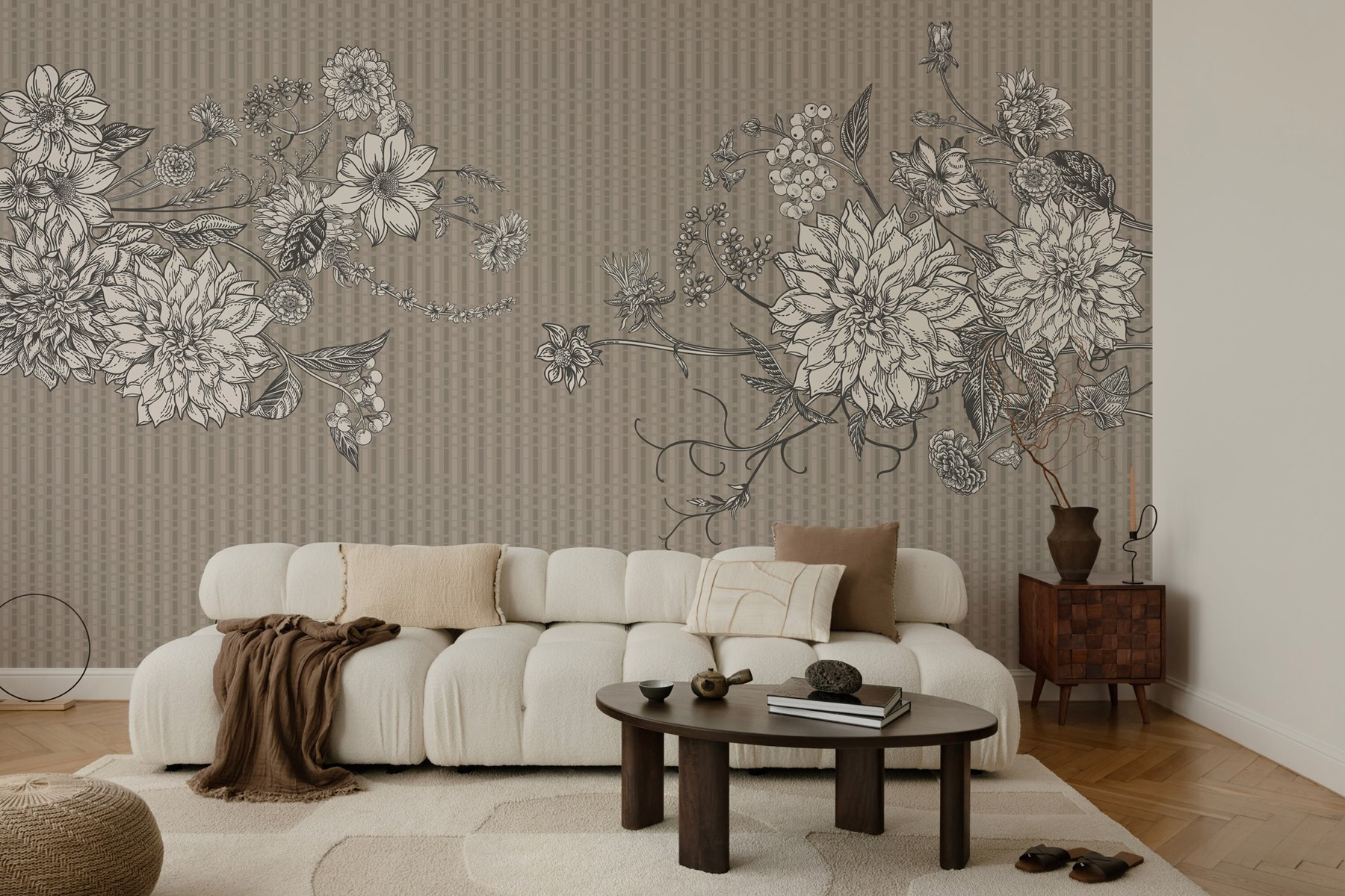 Transforme cualquier habitación en un refugio acogedor con este impresionante mural de pared: Elegancia floral en un diseño armonioso. Imagínese esas flores bellamente esbozadas desplegándose ante sus ojos, mezclando tonos suaves y terrosos con intrincados detalles. Es como llevar un jardín al interior, sin estornudos. Imagina despertarte cada día con esta elegante flor asomándote, levantando tu ánimo al instante. Ya sea en un tranquilo rincón de lectura o en esa incómoda pared que todo el mundo parece ignorar, este mural se lleva la palma. ¿Quién iba a decir que la decoración floral podía ser tan refrescante?