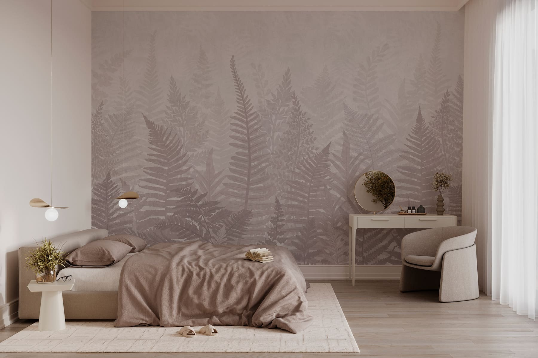 Transforma cualquier habitación en una escapada serena con este encantador mural de hojas de helecho envueltas en una niebla de ensueño. Es como traer un trozo de naturaleza al interior sin la araña ocasional o el molesto insecto. Imagínese despertarse con suaves tonos verdes mezclados sutilmente con grises suaves: es relajante, refrescante y un poco mágico. Este diseño invita a un ambiente tranquilo, perfecto para rincones acogedores o espacios de vida animados. Es como susurrar al mundo exterior que está bien bajar el ritmo y respirar. Los amantes de la naturaleza se sentirán como en casa, envueltos en la esencia del aire libre.