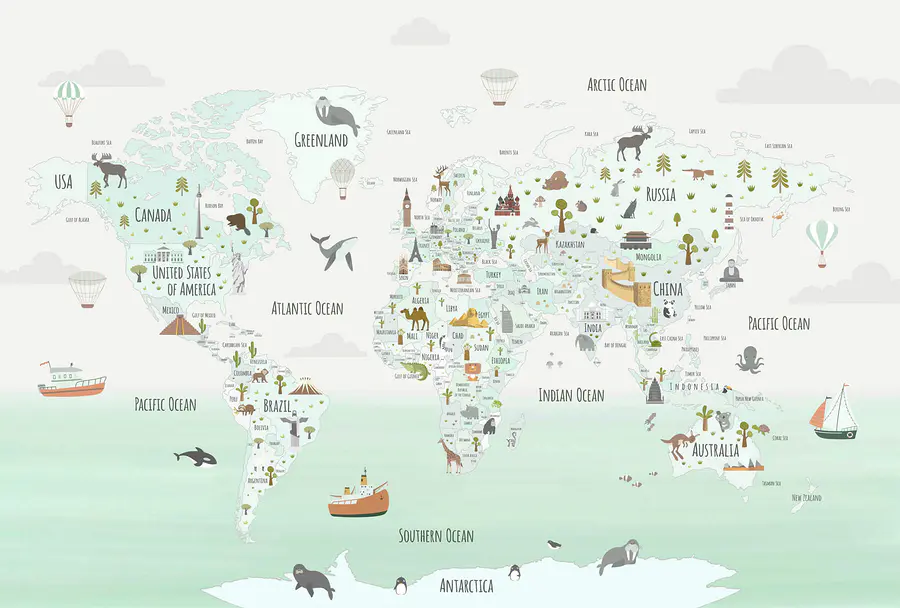 Transformando una habitación en una pequeña aventura, este mural de pared del mundo con animales seguro que desatará la alegría. Imagina a los niños rodeados de criaturas juguetonas, cada rincón del mapa rebosante de carácter, desde monos descarados hasta ballenas volando. Es como tomarse unas minivacaciones cada vez que alguien entra en la habitación. Los colores pastel crean un ambiente suave, ideal para el espacio de cualquier joven explorador. Tanto si sueñan con conquistar continentes como con acurrucarse con historias de tierras lejanas, este mural invita sin esfuerzo a la curiosidad y la imaginación. Además, es un gran tema de conversación: ¿a quién no le gusta un buen dato sobre animales? Añadir este mural transforma las paredes en un lienzo de diversión.