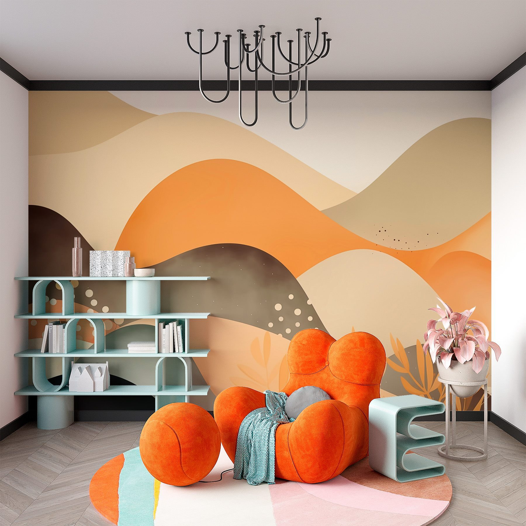 Transforme cualquier pared en una serena escapada con este impresionante mural de paisaje desértico. Imagínese tomando un té helado mientras suaves olas de tonos cálidos y curvas suaves traen la tranquilidad del desierto al interior. Es como tener un trozo de naturaleza en casa, ¡sin la arena en los zapatos! Los detalles sutiles -esos puntos juguetones y toques de follaje- hacen que cada mirada parezca un nuevo descubrimiento. Tanto si ilumina un acogedor rincón de lectura como si sirve de vibrante telón de fondo para animadas reuniones, el encanto de este mural es difícil de resistir. Invita a una sensación de calma, perfecta para momentos de reflexión o inspiración. Imagínese cómo esta belleza podría aportar una sensación de aventura a la vida cotidiana.