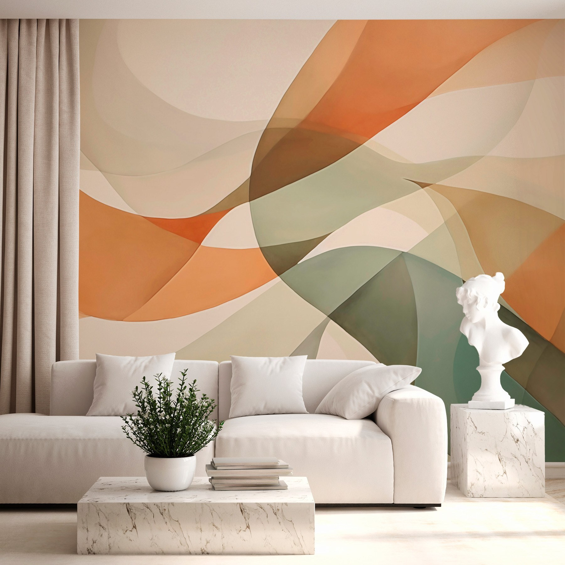 Transforme cualquier habitación en un refugio relajante con este mural de pared de formas fluidas en tonos tierra. Imagina que entras en un espacio que calma la mente al instante e invita a la relajación. Los suaves remolinos y tonos suaves juegan juntos como un cálido abrazo en un día frío, en serio, ¿quién no quiere eso? Es como la naturaleza llevada al interior, perfecta para acurrucarse con un buen libro o tomar un té mientras se sueña despierto. Ya sea para el salón o para un tranquilo dormitorio, este mural consigue que cada momento sea especial. Es fresco, acogedor y un poco artístico, ¡dando vida a cualquier pared!