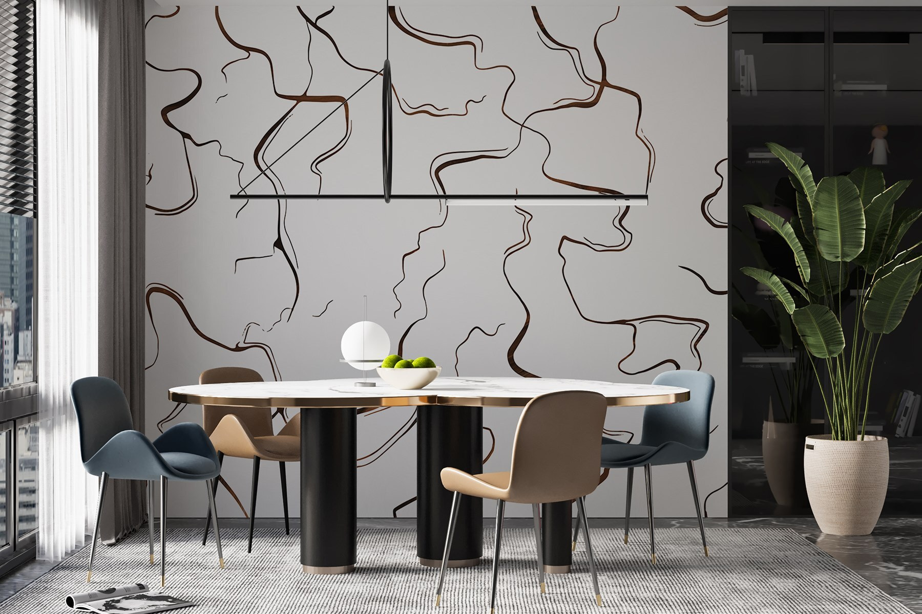 Aporte un toque de fantasía a cualquier espacio con este impresionante mural de líneas abstractas sobre un lienzo blanco. Imagínese entrar en una habitación que parece una danza juguetona de curvas y giros, cada línea contando su propia historia. Perfecto para quienes aprecian el lado extravagante de la decoración contemporánea, este mural transforma una pared en blanco en un cautivador tema de conversación. Puede que sus amigos se pregunten por su significado: ¿tuvo el artista un sueño descabellado o es simplemente una celebración de la creatividad? En cualquier caso, está destinado a inspirar la imaginación e invitar a los cumplidos. Tanto si adorna un salón, un rincón de lectura acogedor o incluso una cafetería de moda, este mural es el tipo de arte que hace sonreír a la gente. No dude en aceptar lo inesperado: al fin y al cabo, es arte mural, no ciencia espacial.