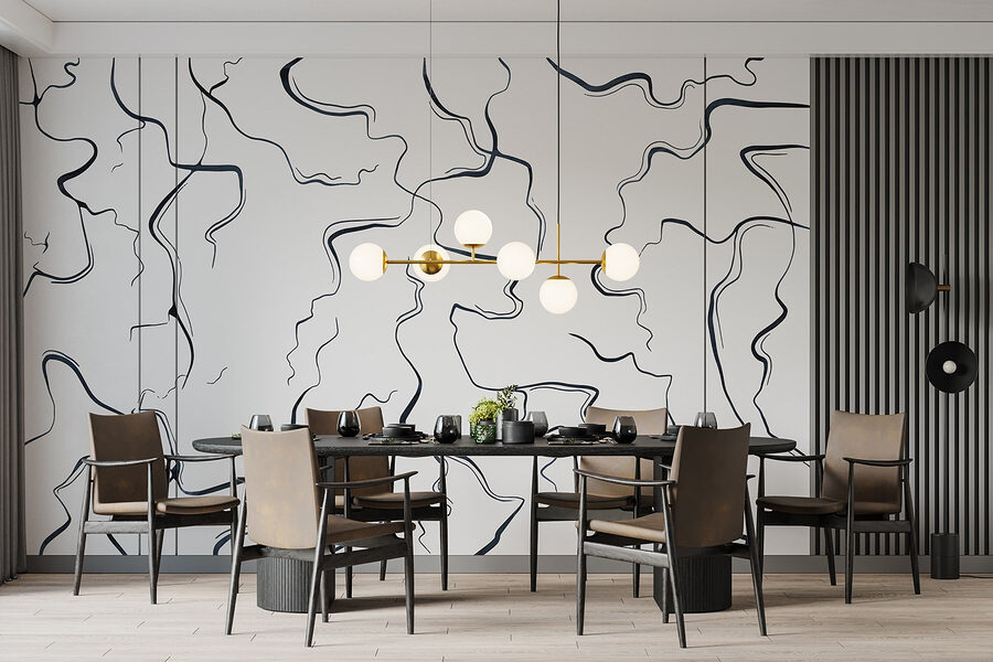 ¿Quiere transformar una habitación? Este mural de pared en blanco y negro podría ser su arma secreta. Con sus líneas elegantes y fluidas, aporta un sutil dinamismo que eleva instantáneamente cualquier espacio. Imagínese un rincón de lectura acogedor o un comedor elegante: el ambiente sereno de este mural hace que todo parezca un poco más sofisticado. Es como añadir una pieza de arte que te envuelve, emitiendo una energía calmante mientras mantiene las cosas visualmente interesantes. Tus amigos entrarán, echarán un vistazo a la pared y se preguntarán cómo has conseguido un look tan elegante. Deja que las líneas bailen y que surja la magia.
