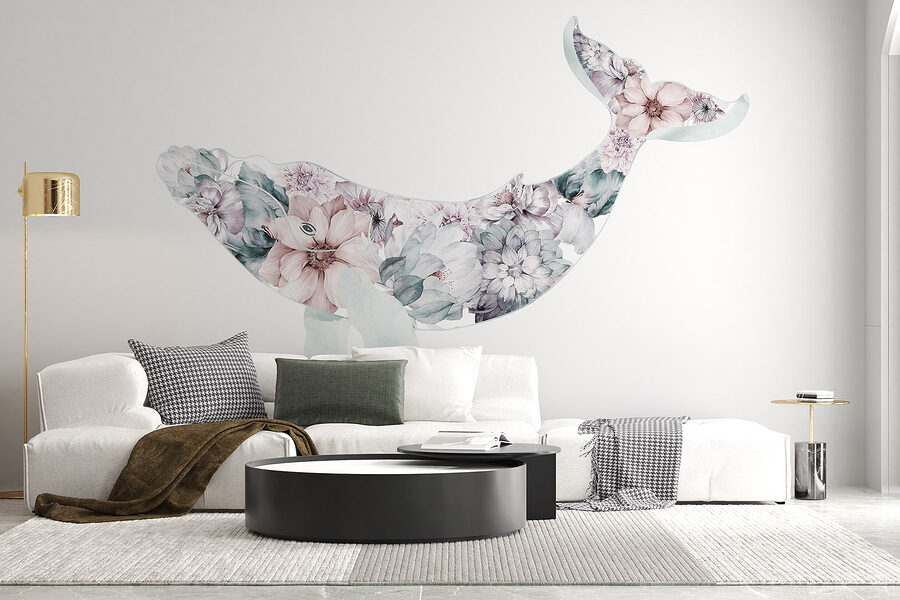 Transforme su espacio con este encantador mural de ballenas, una deliciosa mezcla de vibraciones oceánicas y encanto floral. Imagínatelo: una enorme y serena ballena deslizándose con gracia por un jardín de suaves pétalos y exuberantes hojas. Es como llevar un toque marino al salón, donde cada mirada es como un soplo de aire fresco. Este mural no sólo decora, sino que cuenta una historia de aventuras tranquilas y escapadas de ensueño. Ideal para cualquier habitación que necesite un poco de magia, te hará sentir como si estuvieras nadando en un océano eterno de tranquilidad. Perfecta para crear un acogedor rincón de lectura o un sereno dormitorio, esta pieza puede hacer que sueñes con odiseas oceánicas cada vez que pases por delante. Sienta cómo las suaves olas bañan sus paredes.