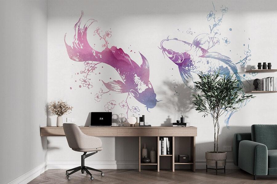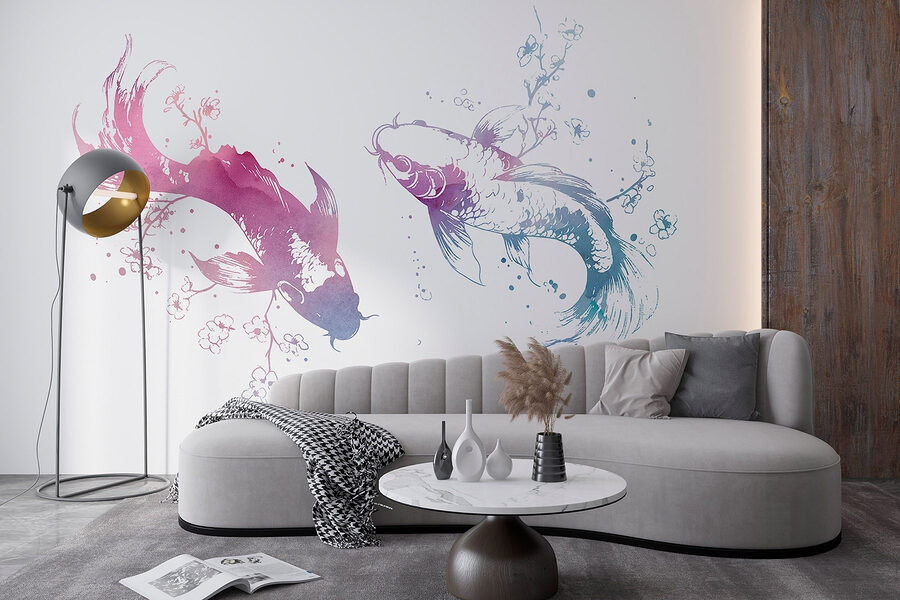 Fotomurales Dos peces con salpicaduras de acuarela (SKU: w03447)