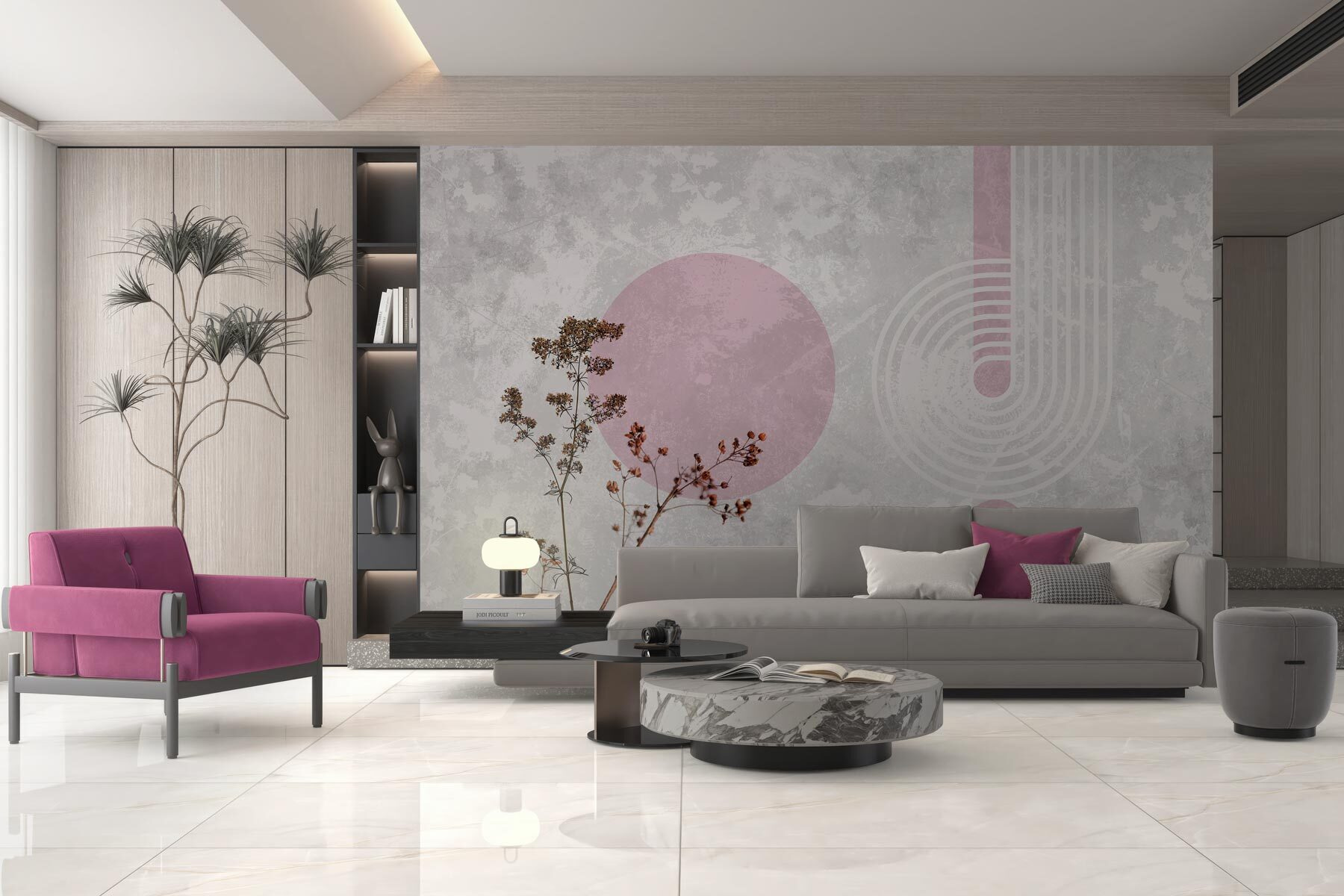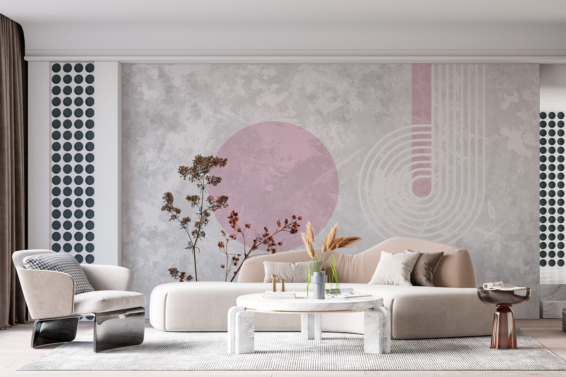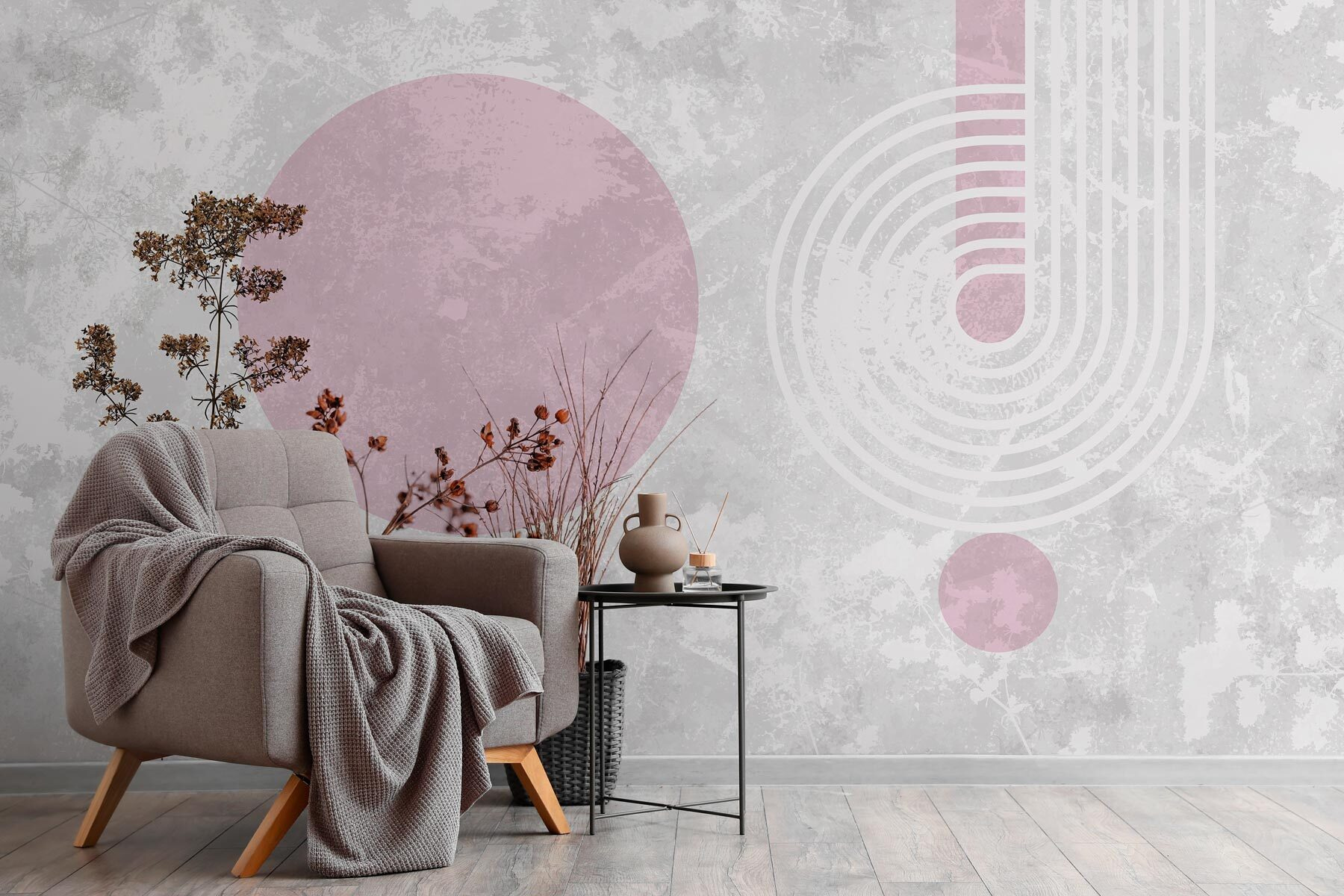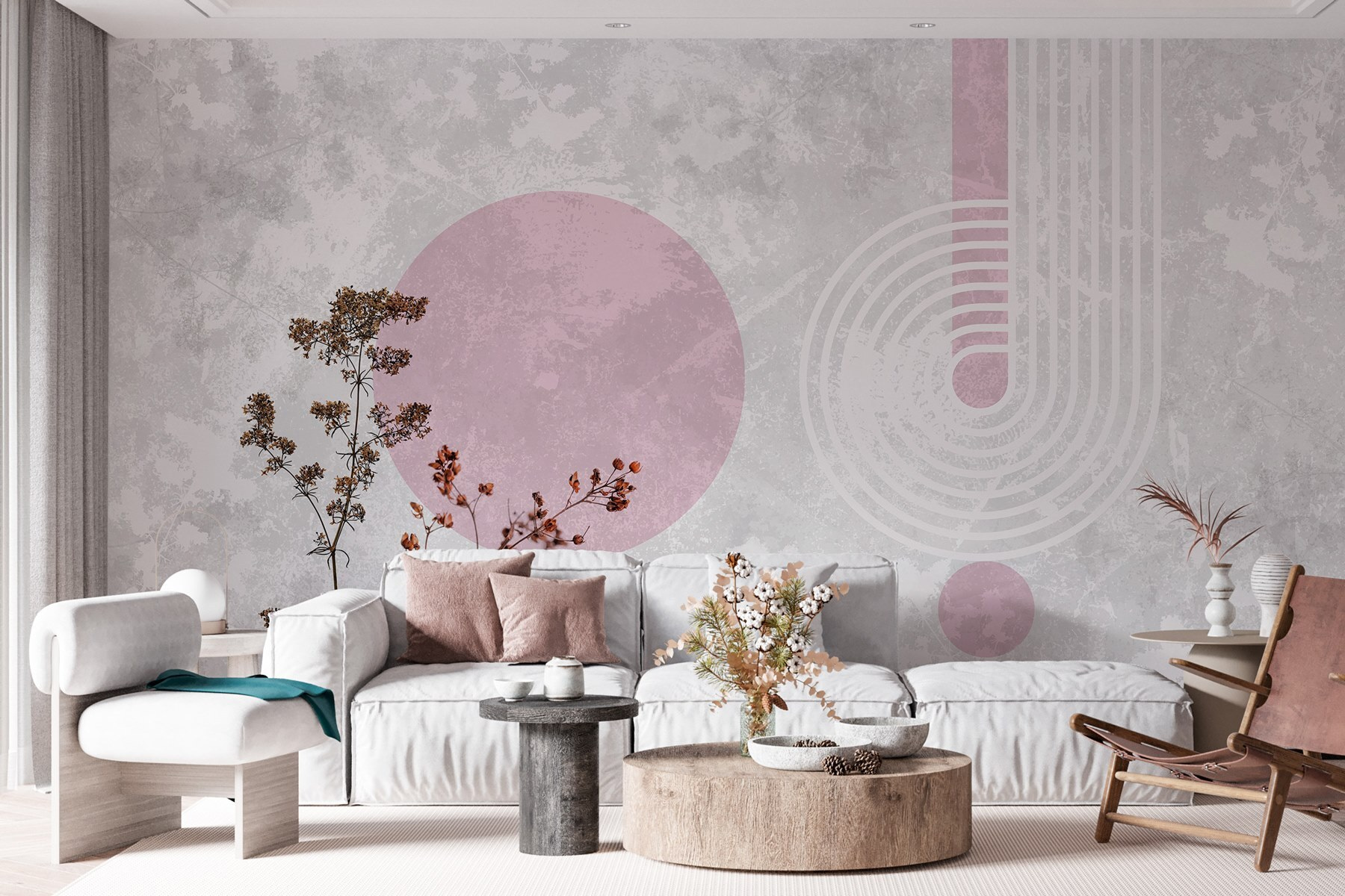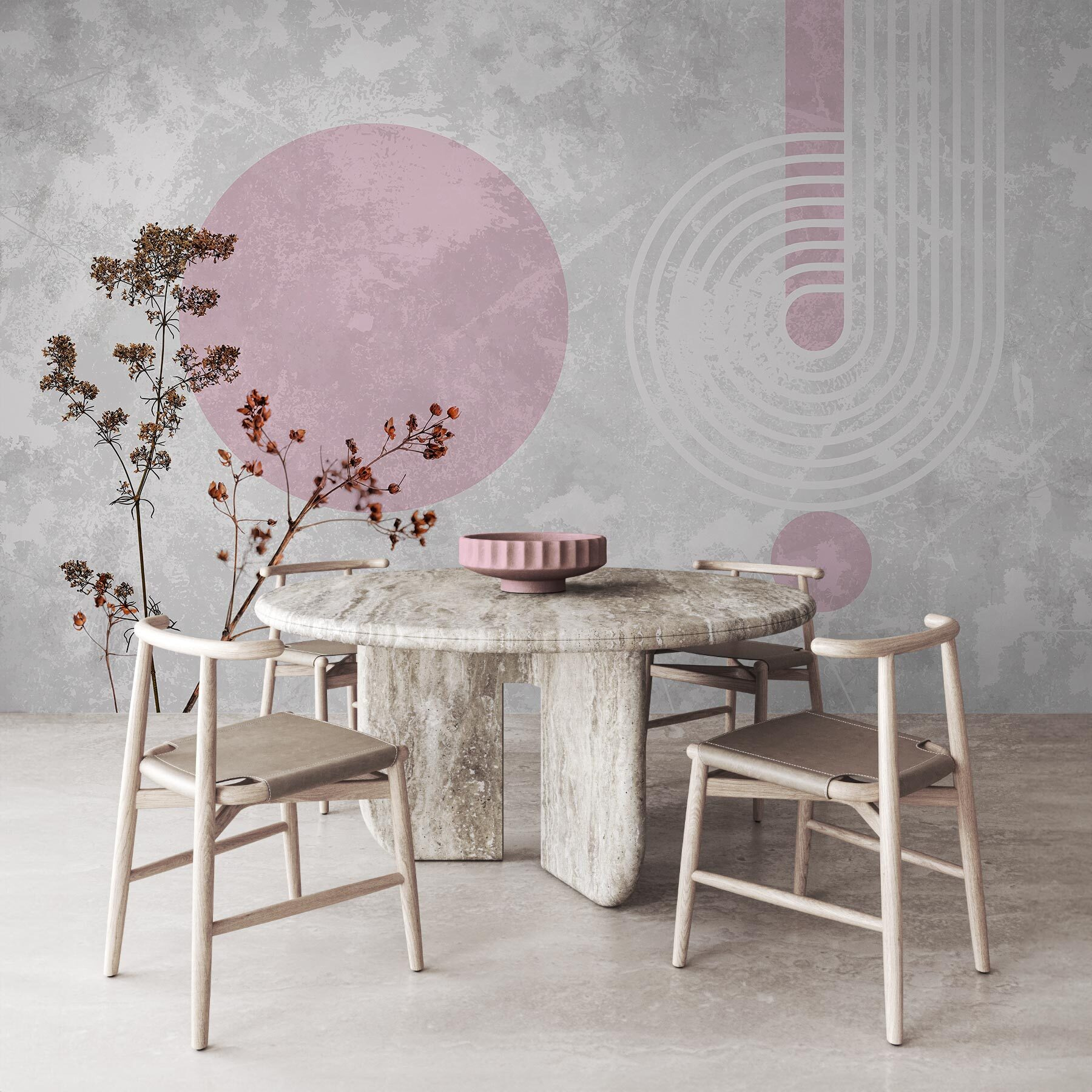 Transforme esa pared lisa en una declaración de estilo con este mural de pared con plantas de hojas marrones y alegres círculos morados. Imagínatelo: estás tomando tu café matutino rodeado de un estallido de calidez y fantasía. Los tonos terrosos aportan un ambiente acogedor, mientras que los círculos vibrantes añaden el dinamismo suficiente para dar vida a cualquier espacio. Es como invitar a un trocito de naturaleza al interior sin necesidad de mantenimiento, ¡sin necesidad de riego! A los invitados les encantará este toque inesperado y, quién sabe, quizá suscite alguna conversación interesante. Perfecto para ese rincón que necesita un poco de amor, este mural es una forma encantadora de expresar un estilo único.