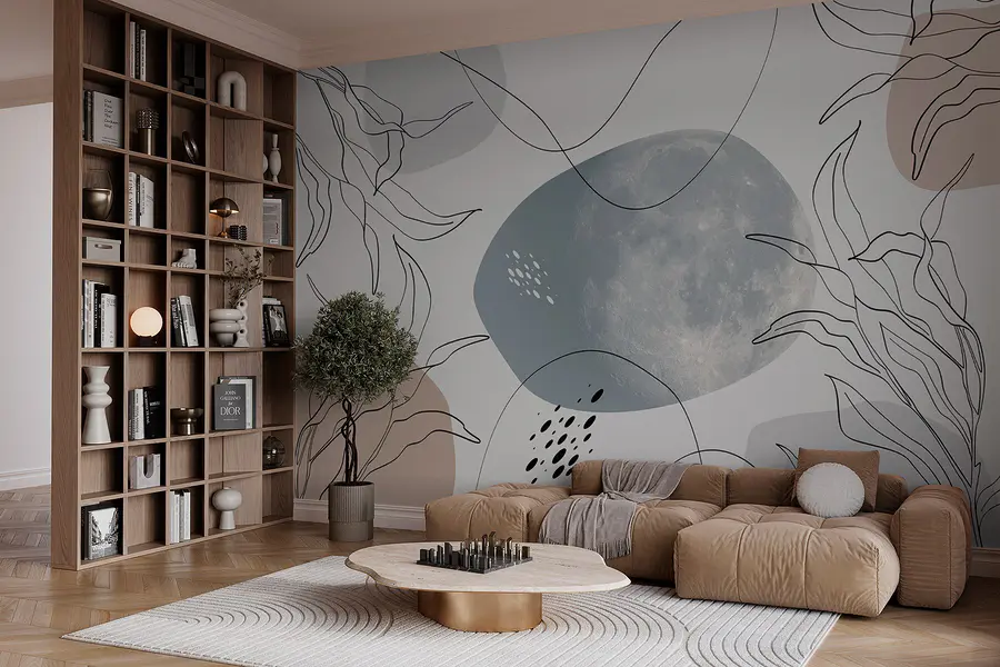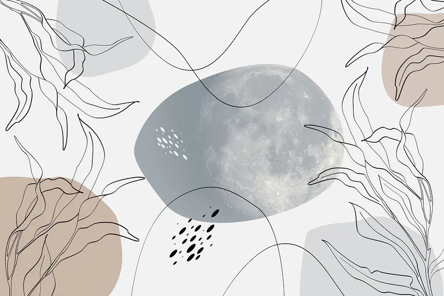 Transforme su espacio con este cautivador mural, donde la luna se encuentra con un baile de delicadas plantas sobre un suave fondo blanco. Es como tener un trocito de naturaleza y una pizca de magia en casa. Imagínese relajándose bajo el suave resplandor de la luna, rodeado de la calma de la exuberante vegetación: es perfecto para crear un acogedor rincón de lectura o un lugar sereno en su sala de estar.