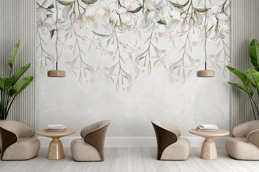 Ilumine su espacio con este impresionante mural de pared con delicadas flores blancas bailando sobre un fondo blanco y suave. Es como traer un apacible jardín directamente a la habitación, ¡sin las molestas abejas! Imagínese acurrucándose con un buen libro, tomando su té favorito y sintiéndose como si hubiera entrado en un oasis de serenidad. La sutil elegancia de estas flores calma la mente: perfectas para un rincón de lectura acogedor o un dormitorio tranquilo. Piensa en todos los cumplidos de los invitados. Fresco, aireado y felizmente hermoso, este mural es un soplo de aire fresco para cualquier pared.
