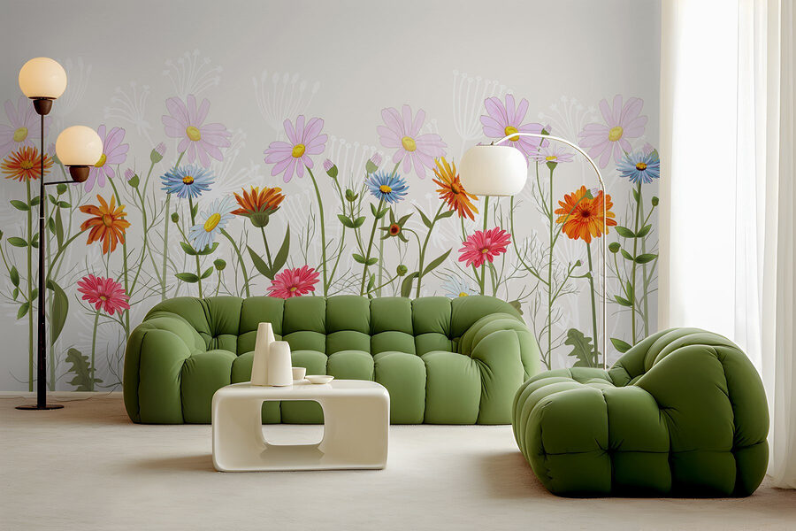 Transforme cualquier habitación en un alegre jardín con el mural “Hilera de flores de colores”. Este vibrante diseño invita a vibraciones soleadas y energía fresca directamente a su espacio. Imagina despertar con esta encantadora escena: rosas brillantes, naranjas soleados y azules tranquilos bailando juntos como si estuvieran celebrando su propia fiesta. Perfecto para un rincón acogedor o para esa pared en blanco que ha estado pidiendo un poco de amor, añade un toque de alegría sin abrumar los sentidos. Es como tener tu propia floristería, sin la regadera ni las advertencias sobre alergias. Tanto si recibes a tus amigos como si simplemente disfrutas de un momento de tranquilidad, este mural crea un telón de fondo alegre y relajante a la vez, pura felicidad colgada en la pared. ¡Que florezcan las flores!