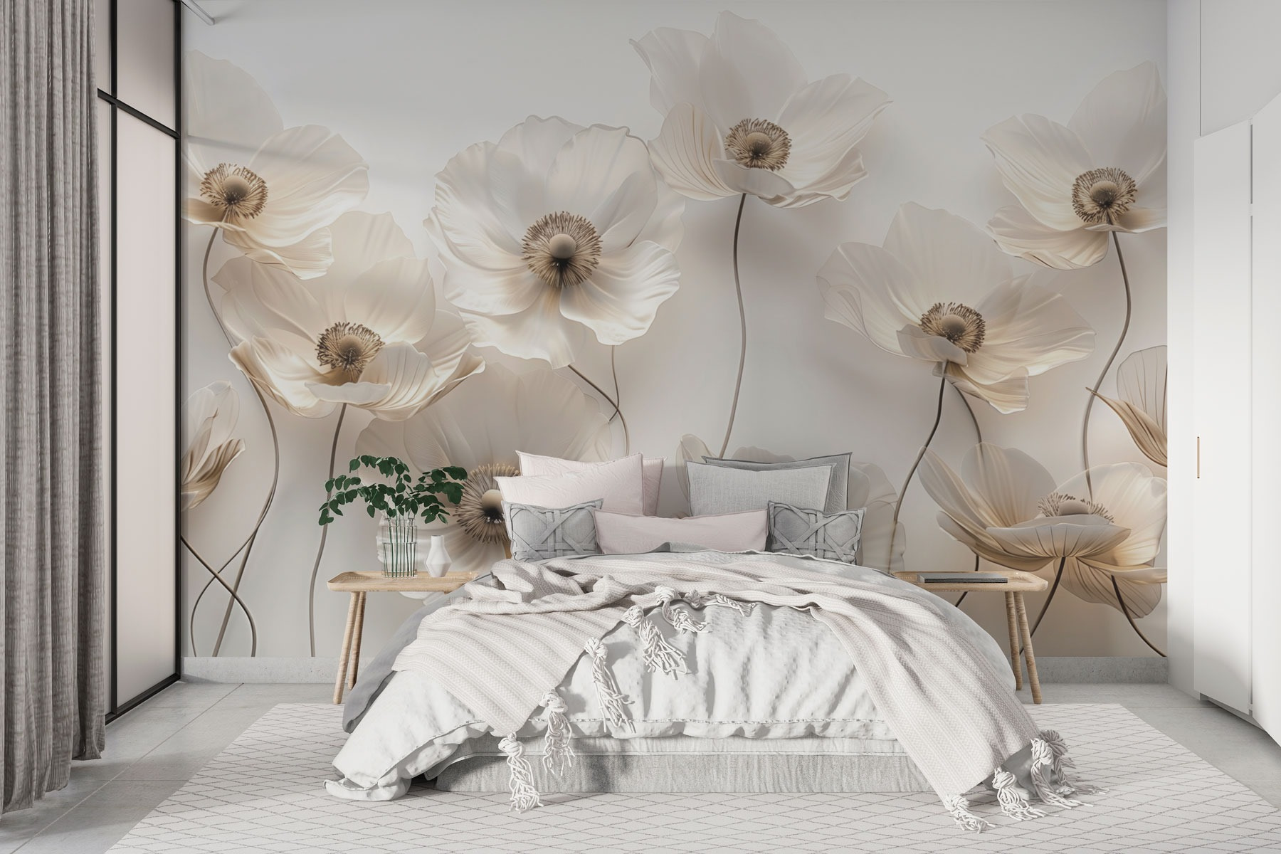 Ilumine cualquier habitación con este impresionante mural de pared que muestra un encantador grupo de flores blancas que se siente como una suave brisa primaveral. Imagine entrar en su espacio y ser recibido por su suave elegancia, aportando una sensación de tranquilidad. Estas flores no sólo son bonitas, sino que dan vida a una pared apagada, transformándola en un acogedor rincón de naturaleza. Perfectas para un salón o un dormitorio, no sólo atraerán las miradas, sino que también invitarán a la conversación. ¿Quién no querría charlar sobre esas preciosas flores? Es como tener un jardín dentro de casa, sin la regadera. Añada un toque de fantasía y encanto con este mural y deje que se despliegue la magia floral.