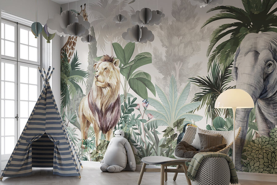 Transforme su espacio en un país de las maravillas de la vida salvaje con este impresionante mural de pared con un majestuoso león, tucanes juguetones y un tierno elefante entre exuberante vegetación. Es como traer un trozo de la selva a tu casa. Imagina que te sientas y dejas que los vibrantes colores te inunden, sintiendo una sensación de calma mientras la naturaleza crece en tus paredes. Perfecto para cualquier habitación que desee un poco de aventura, este mural le invita a relajarse y explorar. ¿Quién iba a decir que decorar podría ser como un mini safari? Cada mirada puede provocar alegría, convirtiendo los días ordinarios en momentos extraordinarios. Es el tipo de arte mural que te hace sonreír, llevando la naturaleza salvaje directamente a tu acogedor rincón.