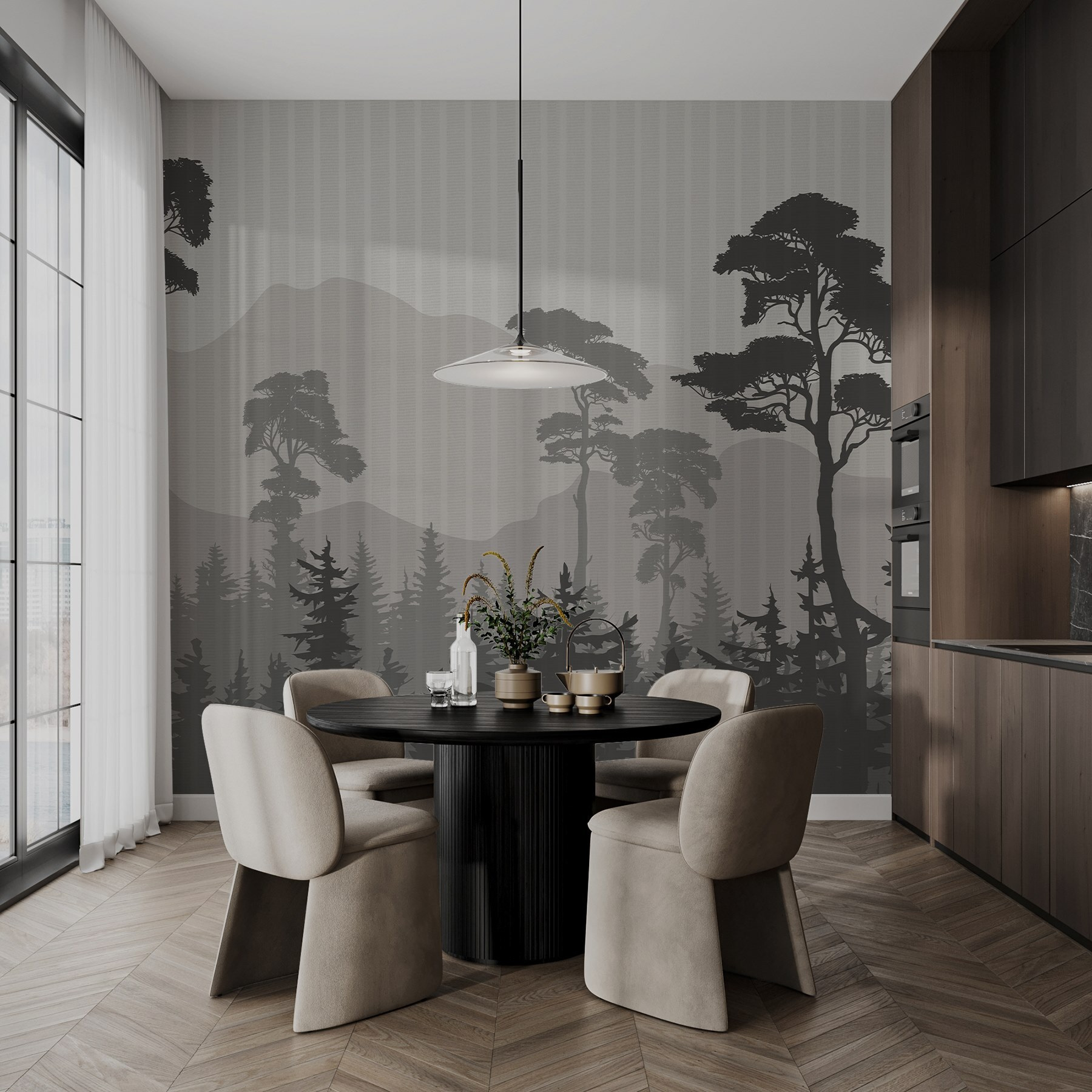 Transforme su espacio con este impresionante mural de pared con un impresionante paisaje de árboles y montañas. Imagínese despertarse cada día con las serenas siluetas de imponentes pinos sobre ondulantes colinas, proporcionando un telón de fondo perfecto para relajarse. Es como tener la naturaleza en el salón de su casa, pero sin los insectos ni las inclemencias del tiempo. Este mural aporta un ambiente terrenal, que fundamenta su espacio a la vez que añade un toque de sofisticación. Imagínese una noche acogedora con una iluminación suave, un libro en la mano y esta hermosa escena que añade el toque justo de calma. Prepárate para disfrutar del aire libre desde la comodidad de tu hogar.