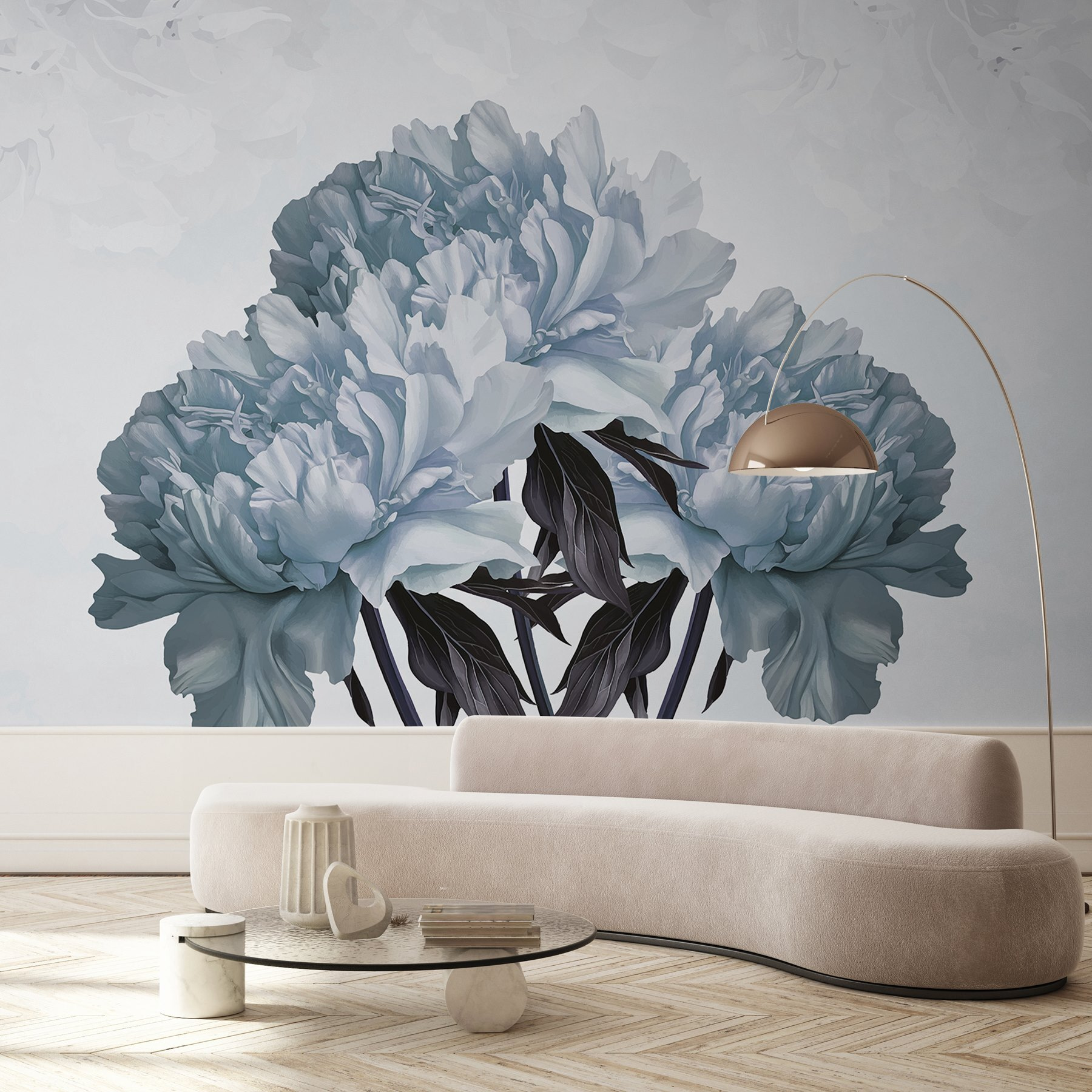 Transforme una pared lisa en una escapada de ensueño con el mural “Delicate Blooms in Soft Hues”. Imagine que entra en un jardín sereno cada vez que entra en la habitación. Las delicadas peonías, en azules y blancos suaves, susurran tranquilidad y calma como el abrazo acogedor de una nube. Es el telón de fondo perfecto para tomar un café por la mañana o para organizar una charla por la noche. Y seamos sinceros: ¿a quién no le gustaría impresionar a sus invitados con un arte que prácticamente respira elegancia? No es sólo decoración, es una inyección de ánimo. Además, es posible que sueñes despierto con tardes perezosas contemplando estas hermosas flores.