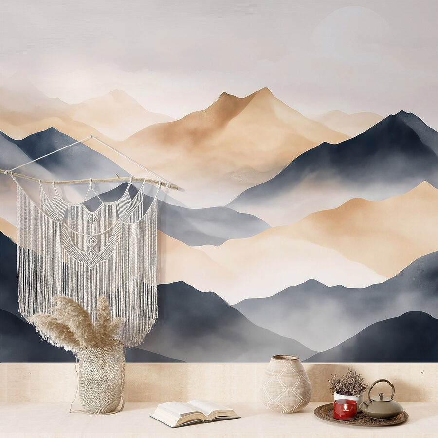 Transformar un espacio nunca ha sido tan fácil con este impresionante mural de pared que representa una cadena montañosa envuelta en una suave niebla. Imagínese entrar en su habitación y ser recibido por las tranquilas vibraciones de la naturaleza, un suave recordatorio de tranquilas escapadas a la naturaleza. Con tonos cálidos y terrosos que combinan a la perfección, es como tener un paisaje sereno en casa. Susurra aventura: imagínate noches acogedoras, con un chocolate caliente en la mano, contemplando esos picos neblinosos. Perfecto para crear un rincón de lectura acogedor o un dormitorio de ensueño, este mural aporta un toque de tranquilidad, sin necesidad de botas de montaña.