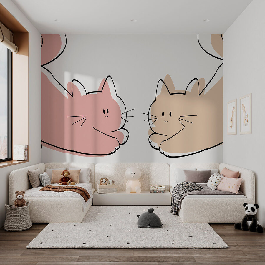 Transforma tu espacio con este encantador mural en el que aparece una pareja de acogedores gatos relajándose. Son el tipo de amigos que desearías que estuvieran contigo en una perezosa tarde de domingo. Imagínatelo en la habitación de un niño o en un rincón juguetón en casa, ¡sonrisas instantáneas garantizadas! Los colores suaves y el diseño caprichoso despiertan sentimientos de calidez y comodidad, por lo que es difícil no echar un par de miradas furtivas. Es perfecto para añadir un toque de encanto sin saturar el ambiente. ¿A quién no le gustaría tener un recuerdo diario de esas adorables bolas de pelo? Imagínate las historias que podrían cobrar vida con estos caprichosos gatitos.