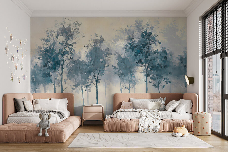 Imagine un bosque sereno en el que los árboles se yerguen erguidos, silenciosamente envueltos en la niebla. Este mural, “Grupo de árboles en la niebla”, capta a la perfección ese momento mágico. Azules suaves y verdes apacibles se mezclan a la perfección, creando un telón de fondo de ensueño que tranquiliza el alma. Es como llevar un trozo de naturaleza al interior sin necesidad de regarlo. Imagínatelo en un rincón de lectura acogedor, donde uno puede escaparse con un libro y una taza de té caliente. Cada mirada es como un refugio de paz, que transforma cualquier espacio en un remanso de tranquilidad, sin necesidad de botas de montaña. Perfecto para los amantes de la naturaleza o para cualquiera que desee un poco de tranquilidad en su hogar.