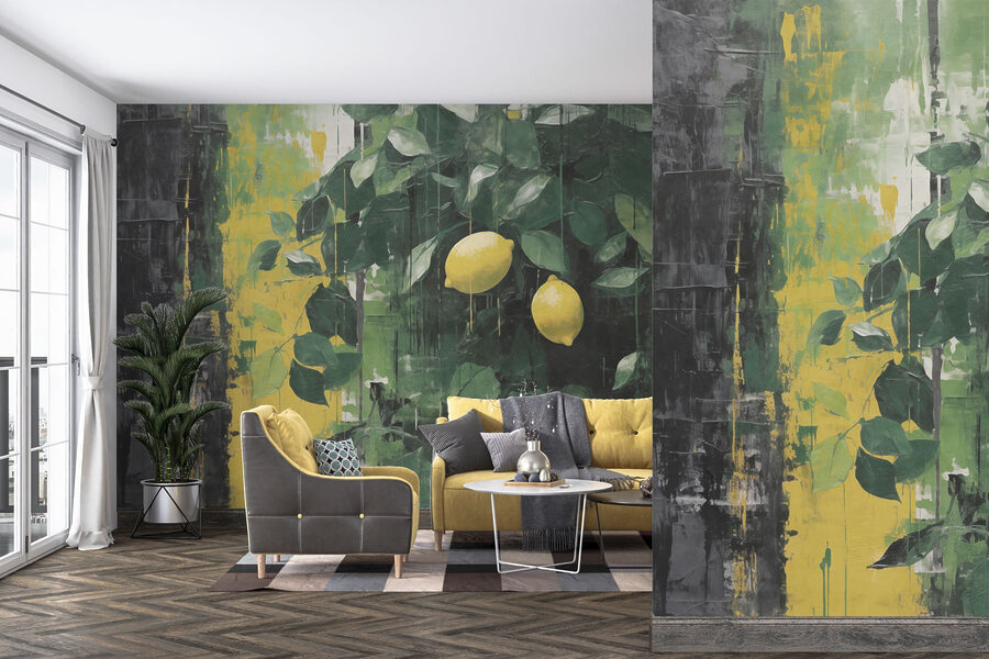 Transforme cualquier espacio con este vibrante mural de pared con limones directamente del árbol. Imagina que entras en tu habitación y te dan la bienvenida estallidos de amarillo soleado y verdes intensos. Es como traer un trozo de verano al interior, perfecto para esos días deprimentes en los que necesitas un pequeño estímulo.