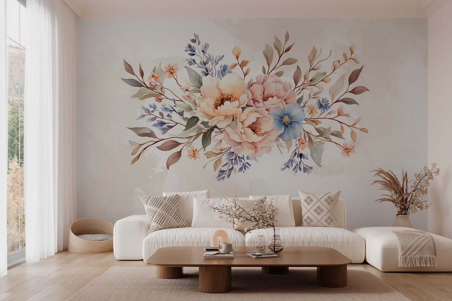 Transforme su espacio con este impresionante mural de pared con un ramo de flores sobre un suave fondo blanco. Es como tener un jardín en el salón, sin necesidad de mantenimiento. Imagínese entrar en la habitación y ser recibido por delicadas peonías y suaves tonos que levantan el ánimo. Este mural despierta la alegría e invita a la calidez, creando un telón de fondo perfecto para reuniones acogedoras o momentos tranquilos con un libro. Además, es una forma fácil de añadir un toque de color sin el compromiso de las plantas vivas. Es magia floral, ¡justo donde la necesitas!