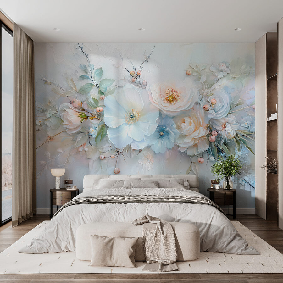 Transforme cualquier habitación con este impresionante mural de pared floral, con una fascinante mezcla de suaves flores y delicadas hojas. Imagínese entrar en su espacio y sentirse animado por estas elegantes flores, casi como si le susurraran dulces secretos desde un jardín iluminado por el sol. Los suaves colores crean una atmósfera serena, perfecta para relajarse después de un largo día. Es como tener un trocito de naturaleza en casa, animándote. Los invitados se preguntarán si tienes un pulgar verde, cuando en realidad todo se debe a este precioso mural. Un toque perfecto para rincones acogedores o incluso para un salón.
