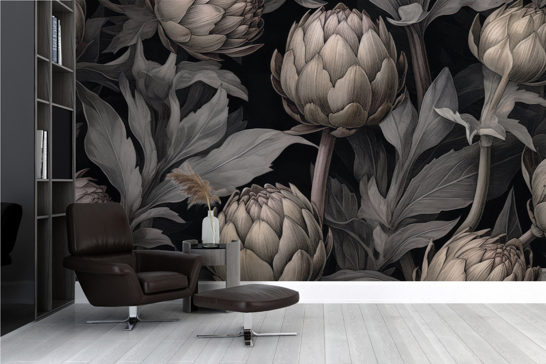 Transforme su espacio con este impresionante mural de alcachofas y hojas bailando sobre un elegante fondo negro. Es como tener una elegante pared de jardín que ilumina al instante cualquier habitación. Imagínatelo: vienen los amigos y, de repente, esa pared se convierte en el centro de atención: todo el mundo está mirando esas alcachofas bellamente detalladas, casi como si pudieran oler la terrosidad de una cosecha fresca. Es sofisticado y acogedor a la vez, perfecto para un salón o incluso una cocina. ¿Quién iba a decir que las alcachofas podían aportar un ambiente tan encantador? Añada un toque de naturaleza a su hogar sin tener que preocuparse por su mantenimiento.