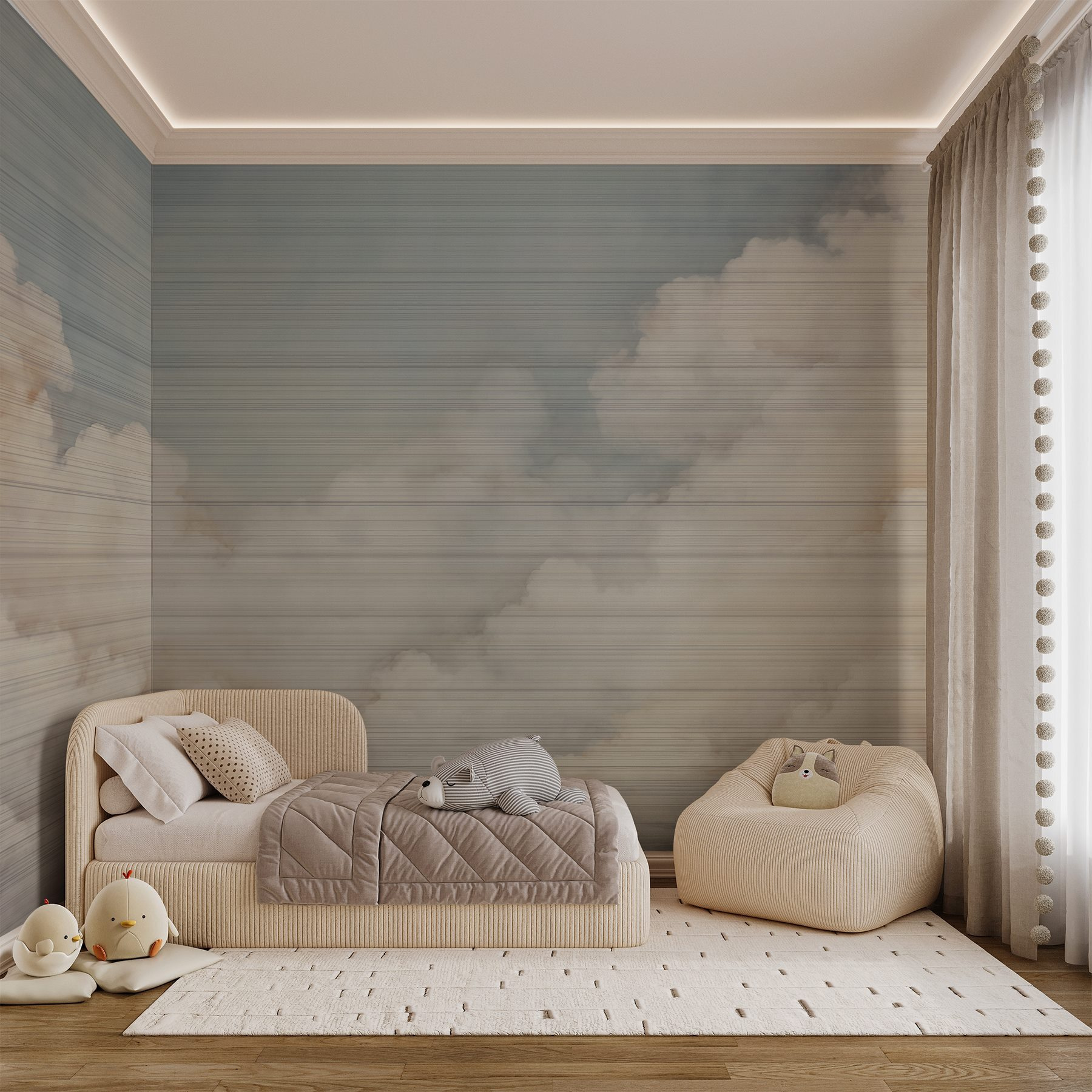 Transforme cualquier espacio en una escapada serena con este mural de esponjosas nubes blancas sobre un suave cielo azul. Es como llevar un trozo de aire libre al interior, ¡sin riesgo de lluvia! Imagínese descansando en un cómodo sillón, con un café en la mano, mientras contempla estas nubes de ensueño. Susurran relajación, ¿no crees? Perfecto para un salón acogedor o un dormitorio tranquilo, este mural invita a soñar despierto y a respirar paz. ¿A quién no le gustaría flotar en las nubes de vez en cuando? Es un toque refrescante en el arte de la pared que se siente ligero, pero oh-tan-invitante.