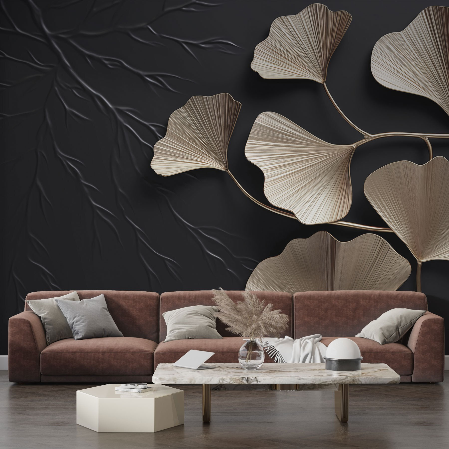 Transforme su espacio con este llamativo mural con artísticas hojas de ginkgo sobre un fondo único. Imagine despertarse con los tonos suaves y naturales del follaje abrazando sus paredes. Añade un toque de naturaleza que hará que tus invitados admiren tu estilo. Las elegantes hojas parecen bailar, creando un ambiente relajante perfecto para un acogedor rincón de lectura o un animado comedor. Además, es fácil de colocar, perfecto para aquellos a los que les gusta un cambio de imagen rápido sin ensuciar. Este mural podría inspirar unas cuantas respiraciones profundas y ensoñaciones. ¿Quién no querría eso?
