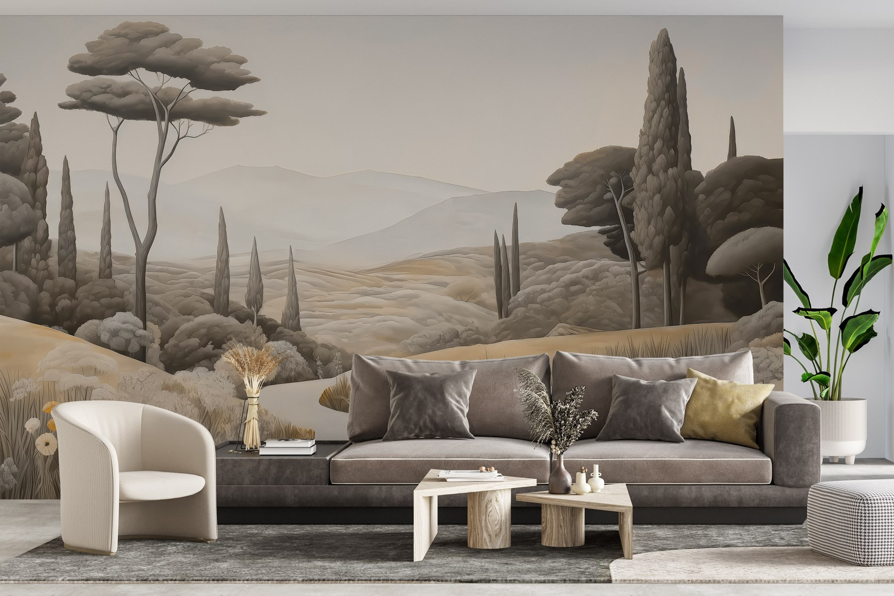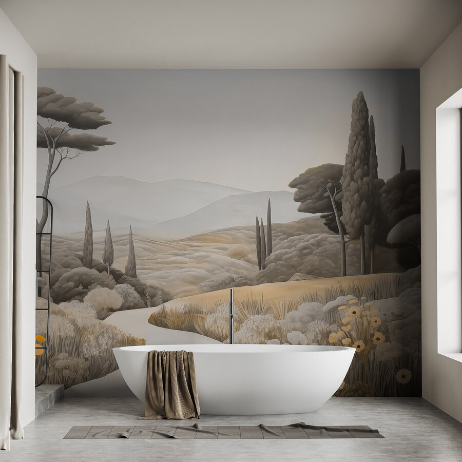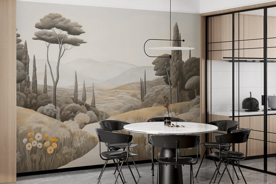 Transforme su espacio con este impresionante mural de pared, “Paisaje con una carretera serpenteante y árboles”. Da vida a un campo sereno, invitando a la naturaleza al interior sin el desorden del exterior. Imagínese tomando un café en un perezoso domingo mientras contempla las suaves colinas y el balanceo de los árboles, es como unas mini-vacaciones directamente en su pared. Perfecto para esos momentos de ensueño, este mural envuelve su habitación en tonos cálidos y terrosos y detalles suaves que le harán querer respirar profundamente. Susurra relajación, recordándote tranquilos paseos a cielo abierto. Imagínate las conversaciones que podría suscitar o las vibraciones de calma que aporta: ¡qué toque más dulce para cualquier rincón!